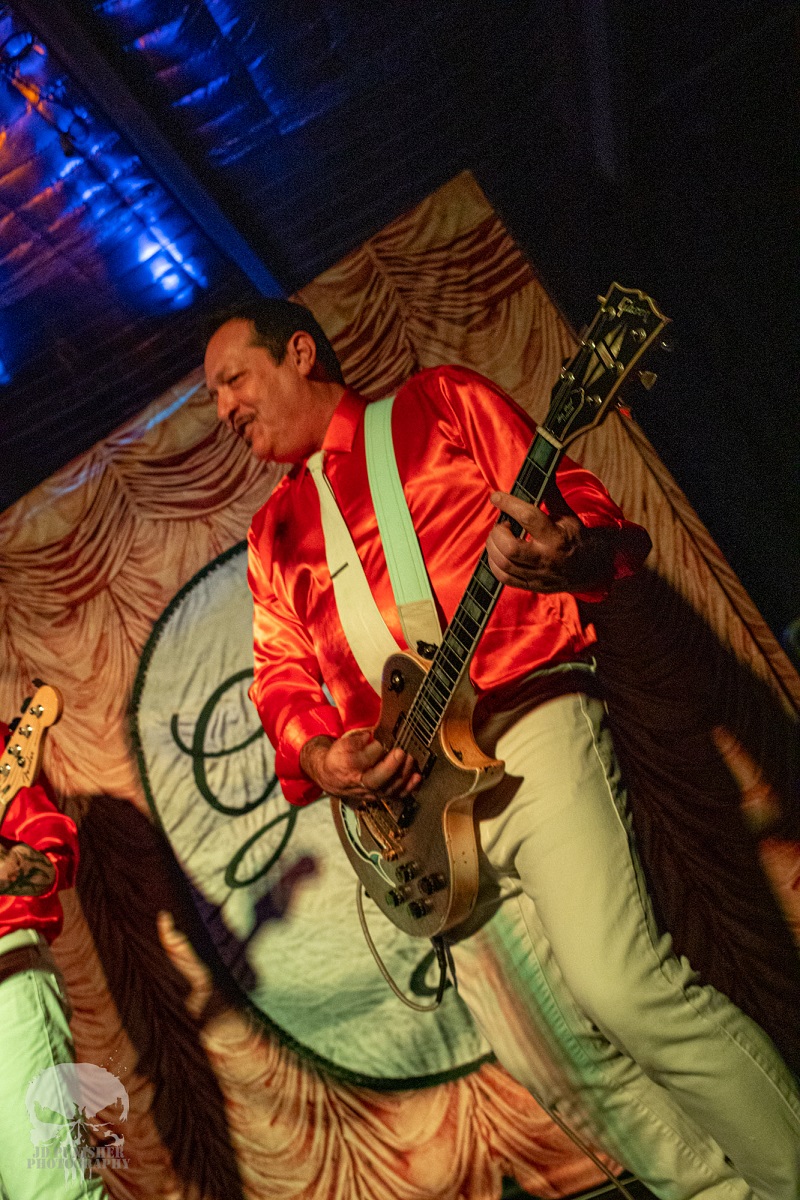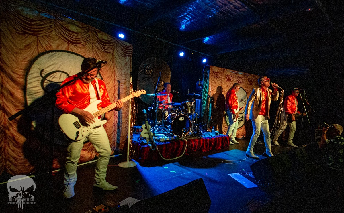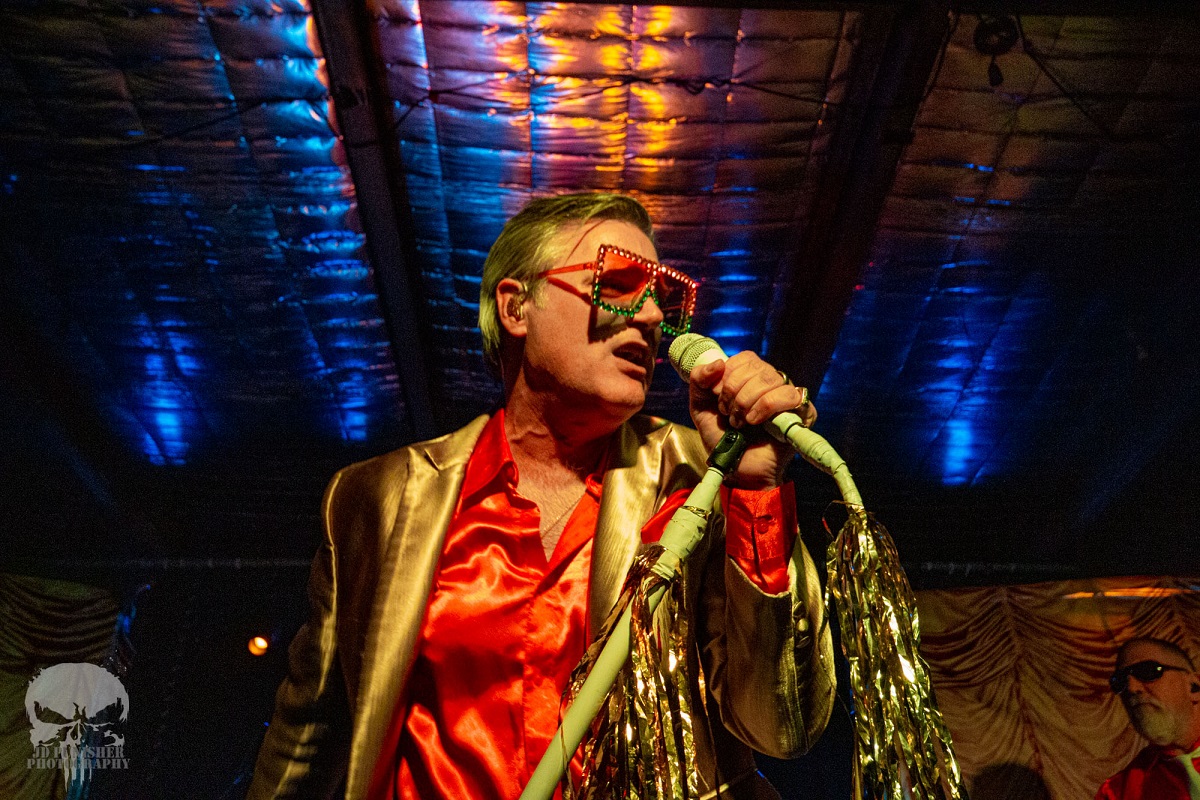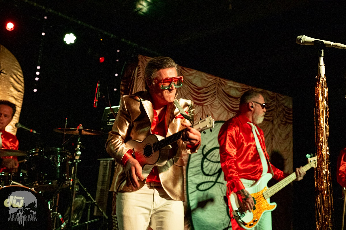 Well, it’s that time where the world’s greatest cover band takes to the stage. As frontman Spike Slawson takes to the stage in a fantastic golden suit with a red silk shirt, he takes up his signature ukulele and begins to bust out a relaxed version of the Steely Dan classic ‘Rikki Don’t Lose That Number’. As the remainder of the star studded line up takes the stage in matching attire, Pinch (of The Damned) counts the band in and from there on, it’s high energy for the rest of the show.