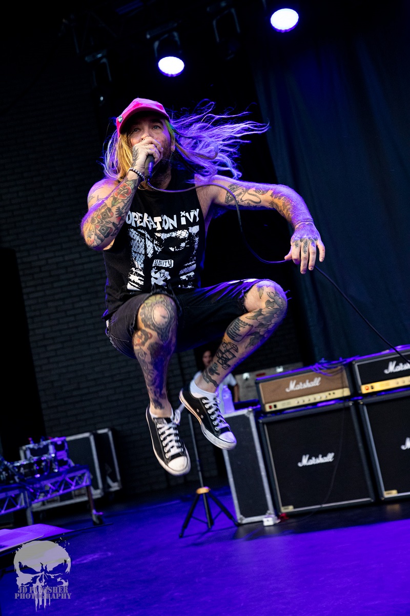As the sun sets over the River City, local support Anty! takes the stage and brings a chilled vibe to the crowd. The Bennies frontman bounces all over the stage with a brilliant mix of reggae and cruisy punk. With only a rhythm section, they still provide an amazing sound and Anty really knows how to get the crowd prepared for the upcoming punk lords. Even throwing in a Madness cover for good measure, the crowd of seasoned punks grooves along to the beat.