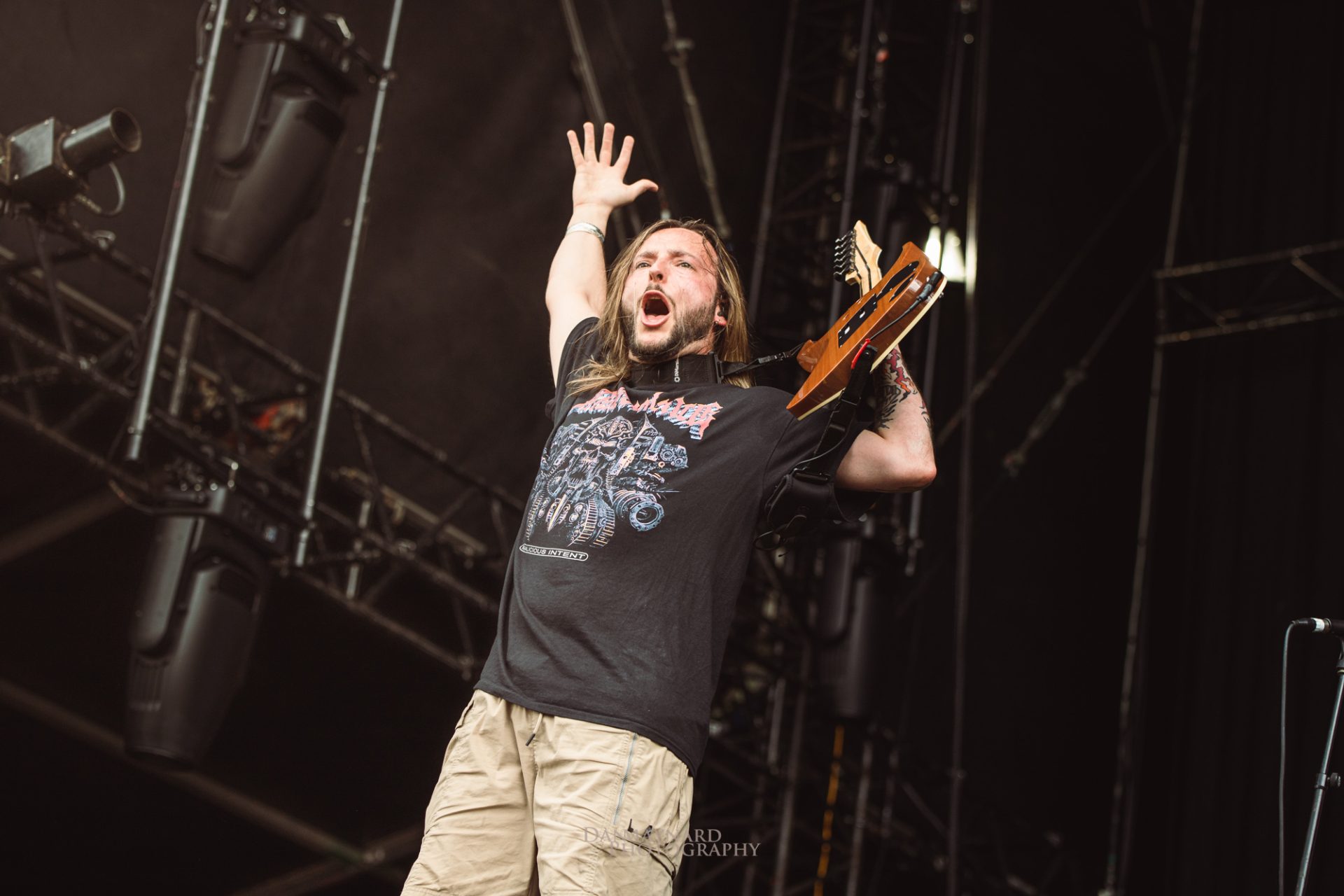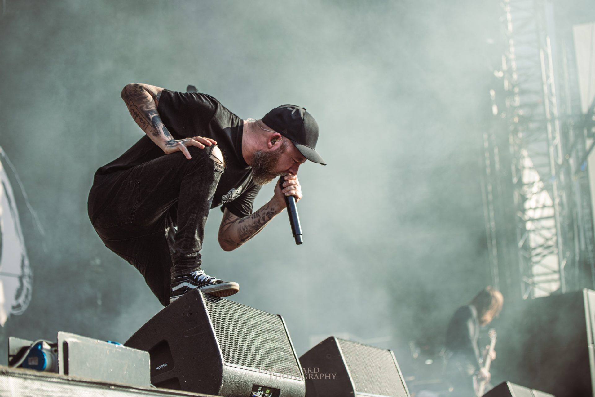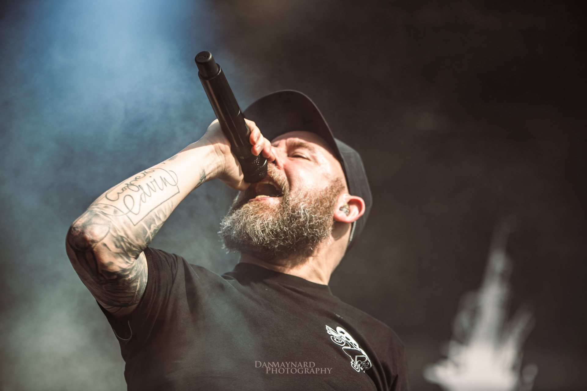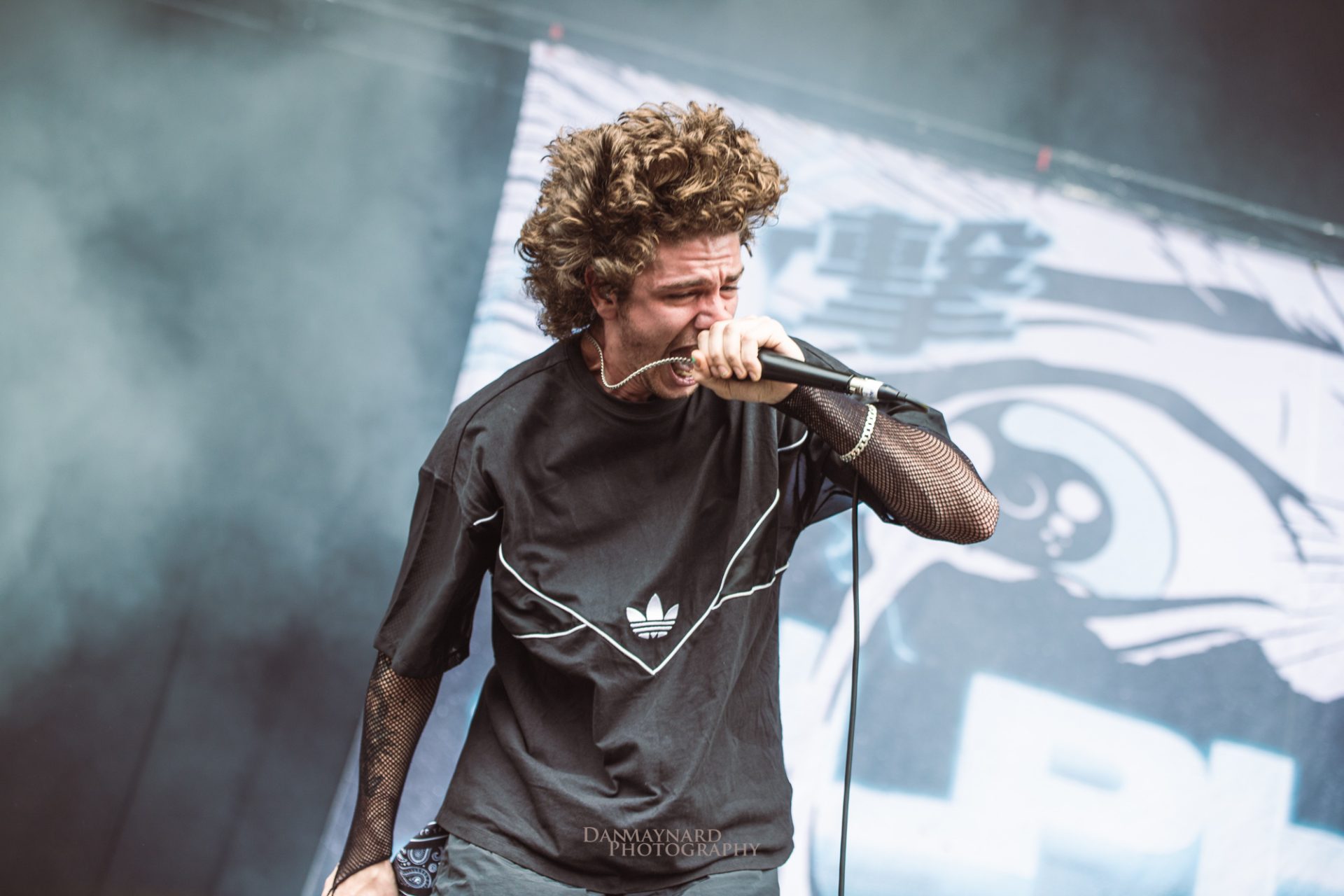 First up on Stage 2 is UK hardcore act, Malevolence. As the theme song to COPS (you know the one) plays over the multitude of speakers across the arena the band take the stage and then BANG! A blast of noise from the speakers means we’re off running. “Let’s get this fucking party started!” declares front man Alex Taylor and as the rain begins to ease off a bit the crowd really starts to get into it with the dirty breakdowns inspiring the first of many circle pits of the day. Ripping through a set from across their releases including crowd favourite Self Supremacy (which, I might add, inspired the fastest moving and most hectic circle pit I have seen in a long time), Malevolence are a powerhouse and genuinely grateful to be here.