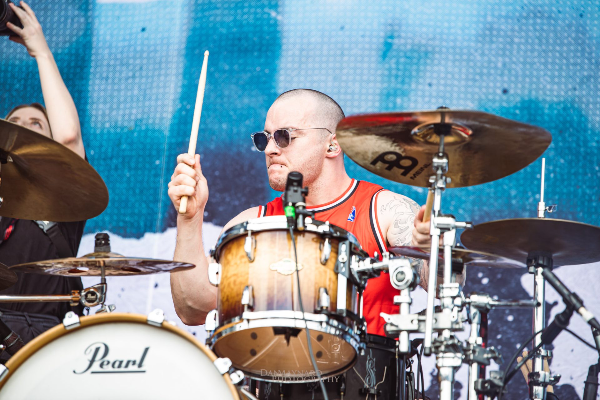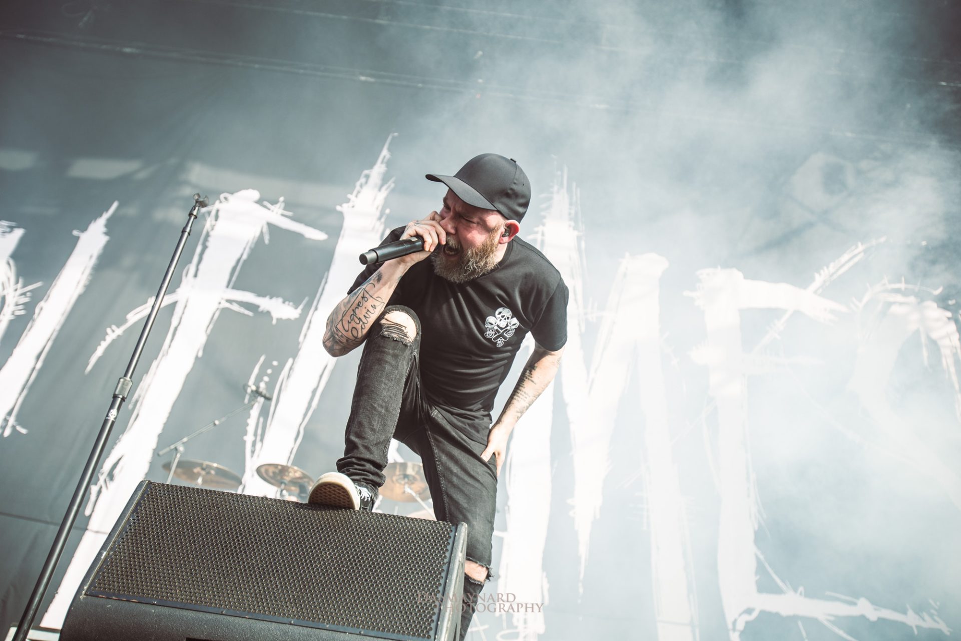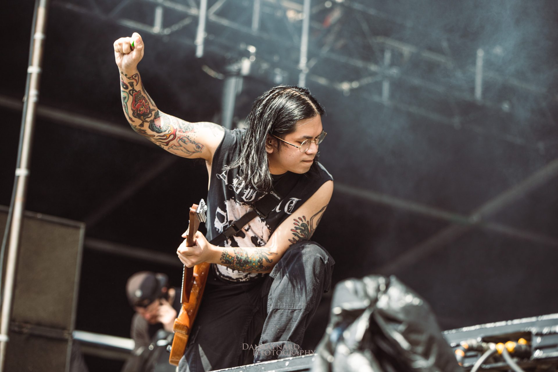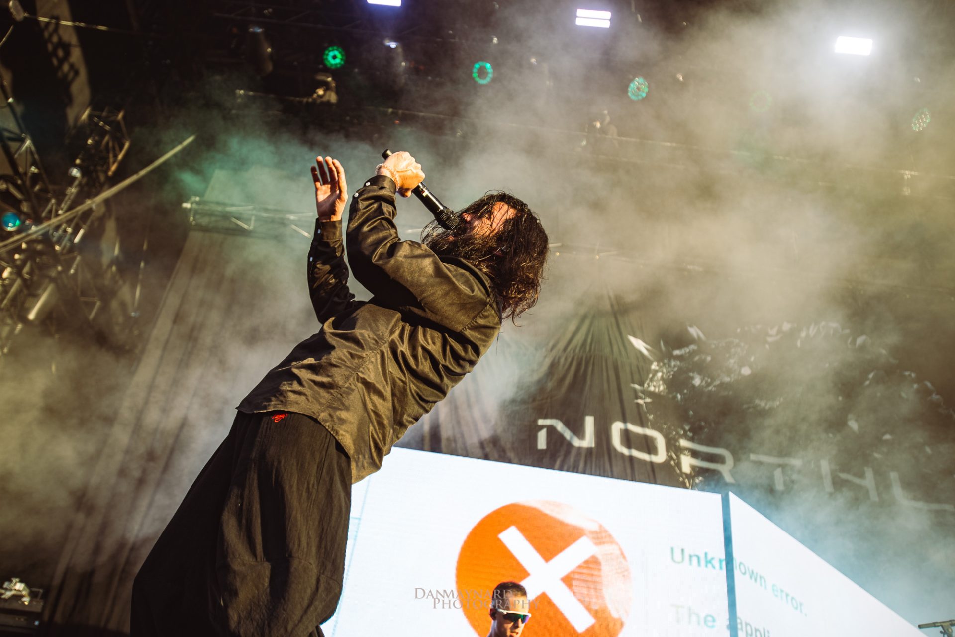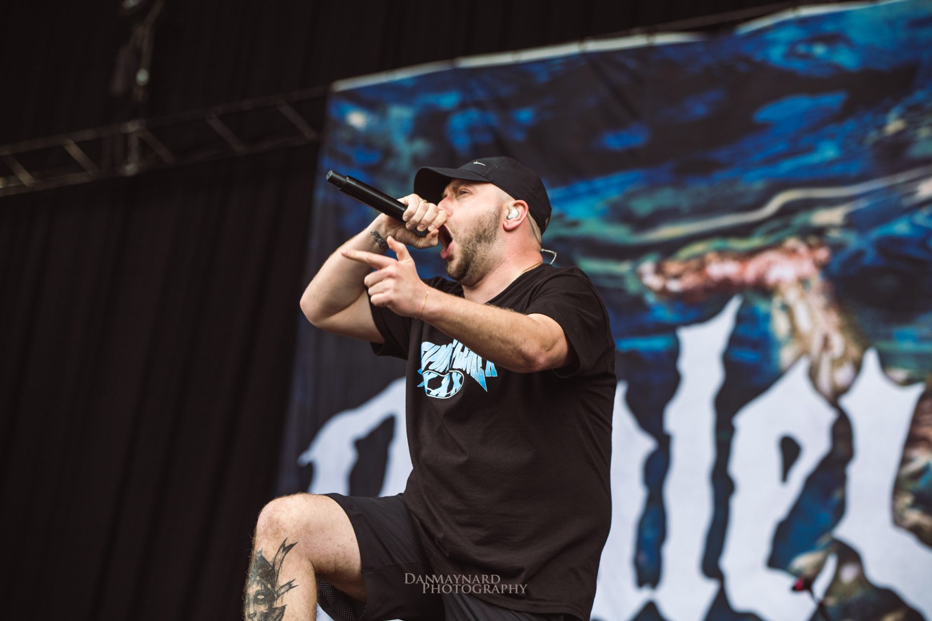 First up on Stage 2 is UK hardcore act, Malevolence. As the theme song to COPS (you know the one) plays over the multitude of speakers across the arena the band take the stage and then BANG! A blast of noise from the speakers means we’re off running. “Let’s get this fucking party started!” declares front man Alex Taylor and as the rain begins to ease off a bit the crowd really starts to get into it with the dirty breakdowns inspiring the first of many circle pits of the day. Ripping through a set from across their releases including crowd favourite Self Supremacy (which, I might add, inspired the fastest moving and most hectic circle pit I have seen in a long time), Malevolence are a powerhouse and genuinely grateful to be here.