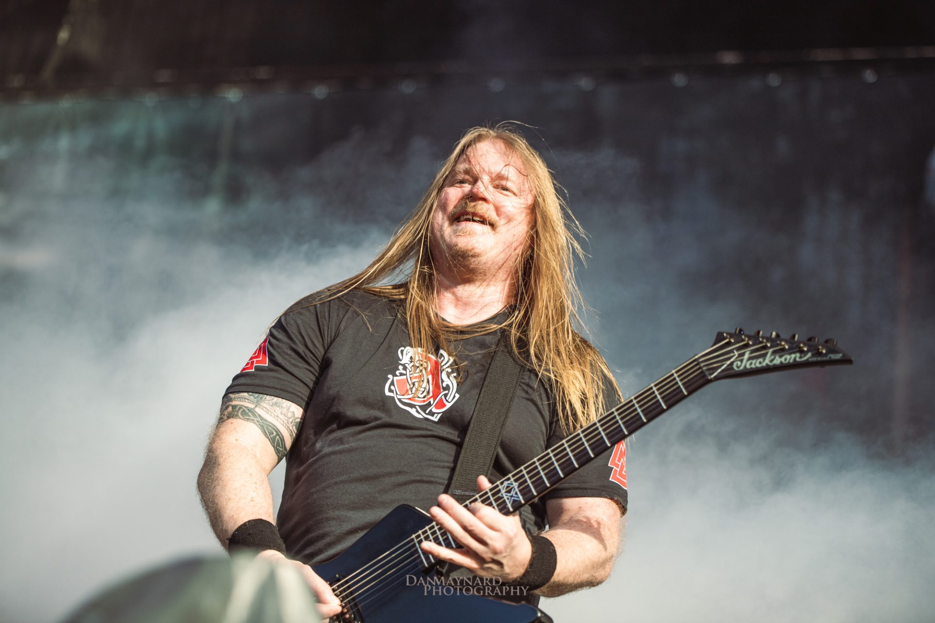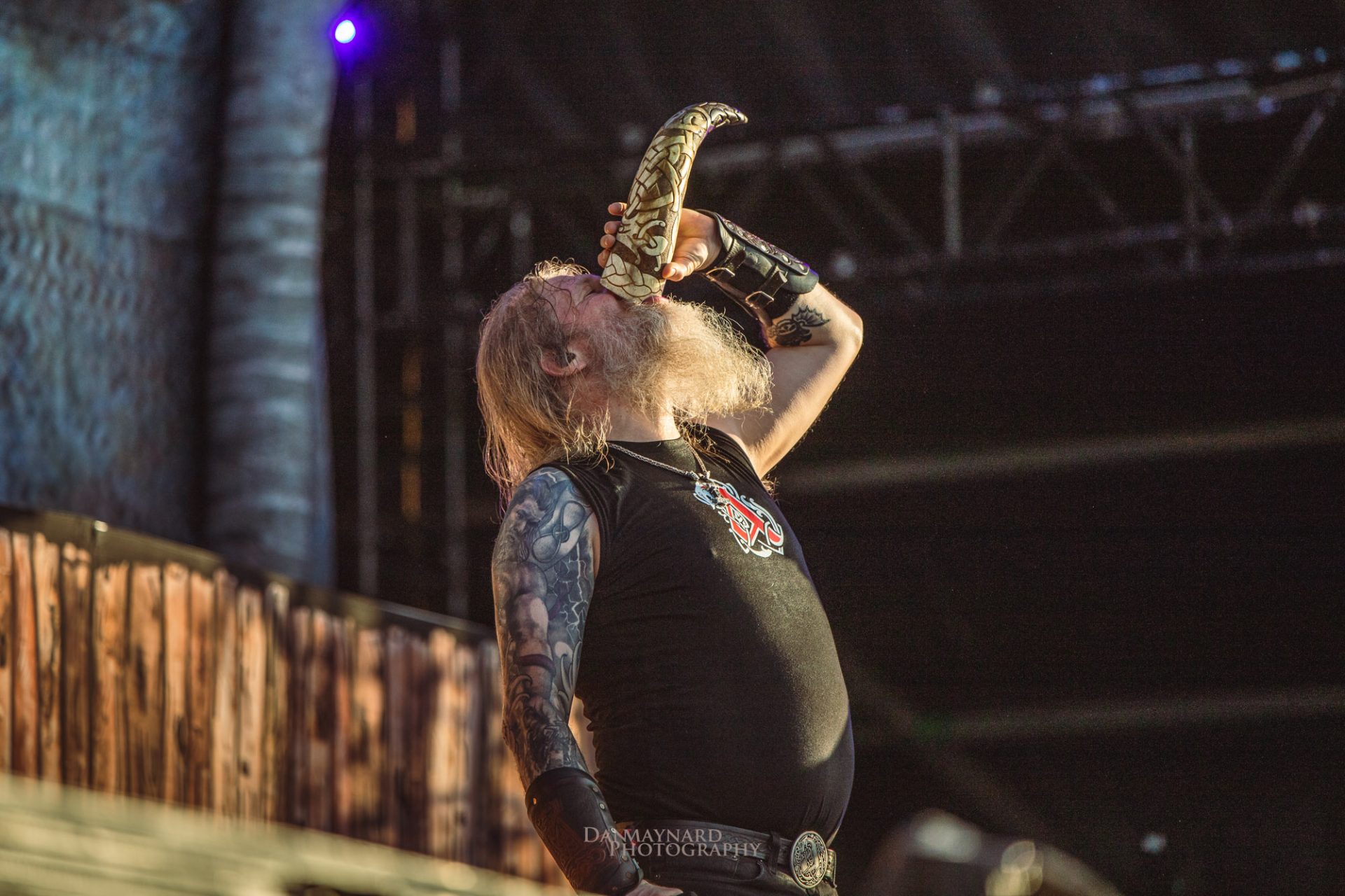 As the sun begins its descent behind the pavilions, Hegg praises the masses for braving the harsh conditions all day. But it’s not too long before the stages are almost completely covered in shade, finally, and as Hegg leads his band through Twilight Of The Thunder God, twilight does indeed approach.
