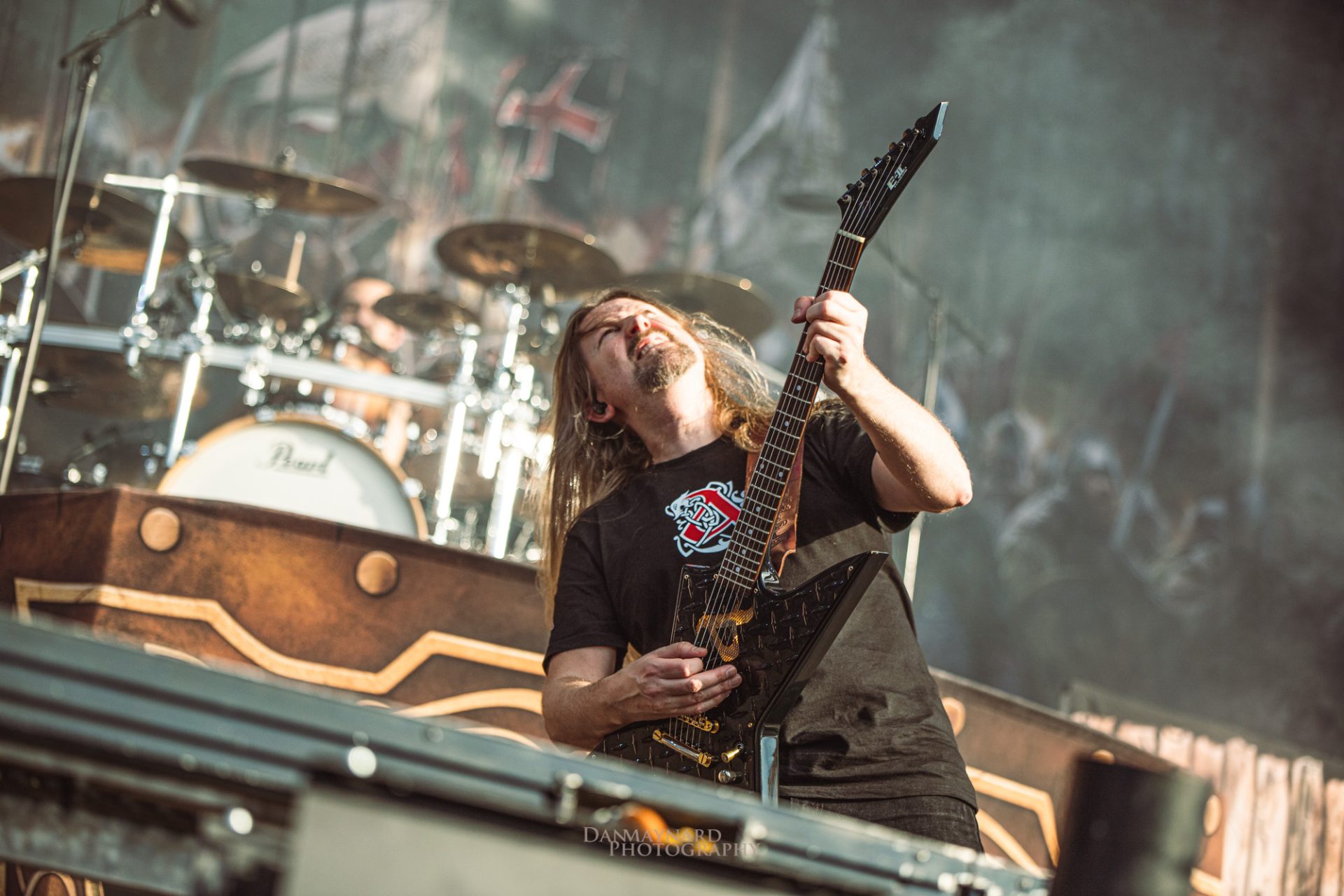 With an epic stage design comprised of Viking ships and statues looming ominously over the band, vocalist Johan Hegg and his band of warriors smash and purge their way through an epic set that has the hungry crowd eating out of the palm of their hands. Hegg’s guttural vocals soar across the afternoon sky as he belts out songs like The Great Heathen Army, First Kill and Raise Your Horns, the latter of which sees him swigging god-knows-what from his very own horn.