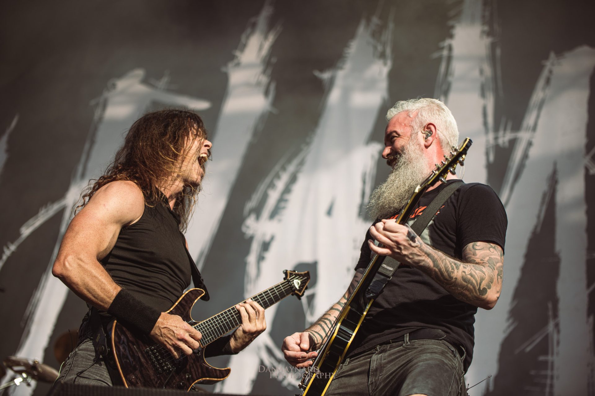 The Swedes are in high spirits despite the heat which vocalist Anders Friden contrasts to the ice on the ground in their motherland. Guitarists Bjorn Gelotte and newcomer Chris Broderick shred their way non-stop through an 8 track set of both new (The Great Deceiver, Foregone pt.1) and old (Cloud Connected and crushing set closer Take This Life). Despite numerous line up changes, these guys remain a formidable force in the global heavy metal market and today’s set is a testament as to why.