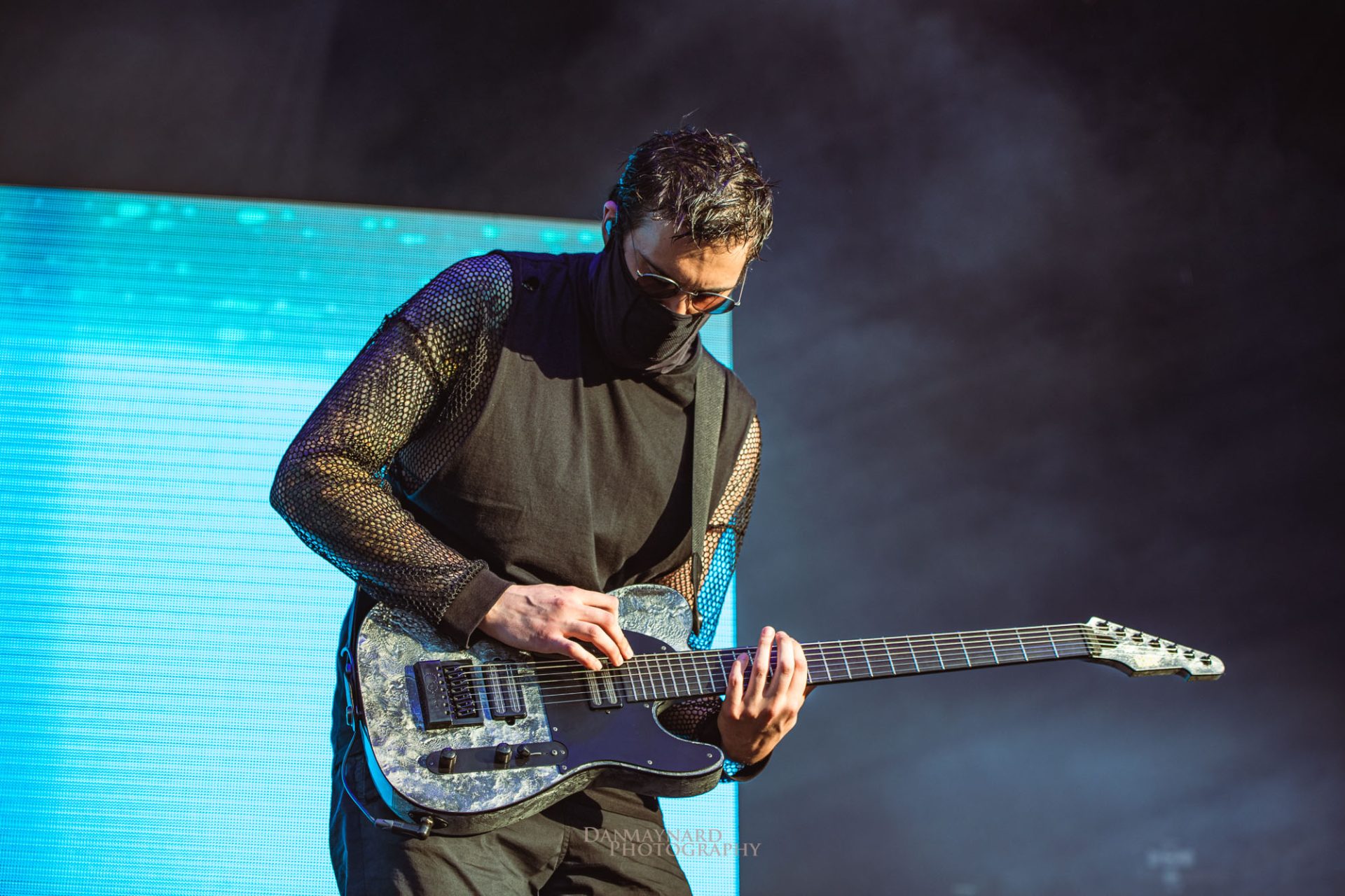 As the band joins him, the song kicks in and so does the crowd. They sing, they dance, they absolutely love it and so does the band. Guitarist Josh Smith jumps around the stage with the energy of a young boy during Echo Chamber which transforms the mosh pit into a total dance party. The Sydney based quartet have seemingly traded in their signature pyrotechnics for a series of giant LED screens whose effect only amplifies as the sun begins to set. “Finally some shade!” Bridge exclaims, adding “Now there’s no reason for you guys to save your energy” and they proceed to belt out a wild rendition of hit single Bloodline from 2019’s Alien.