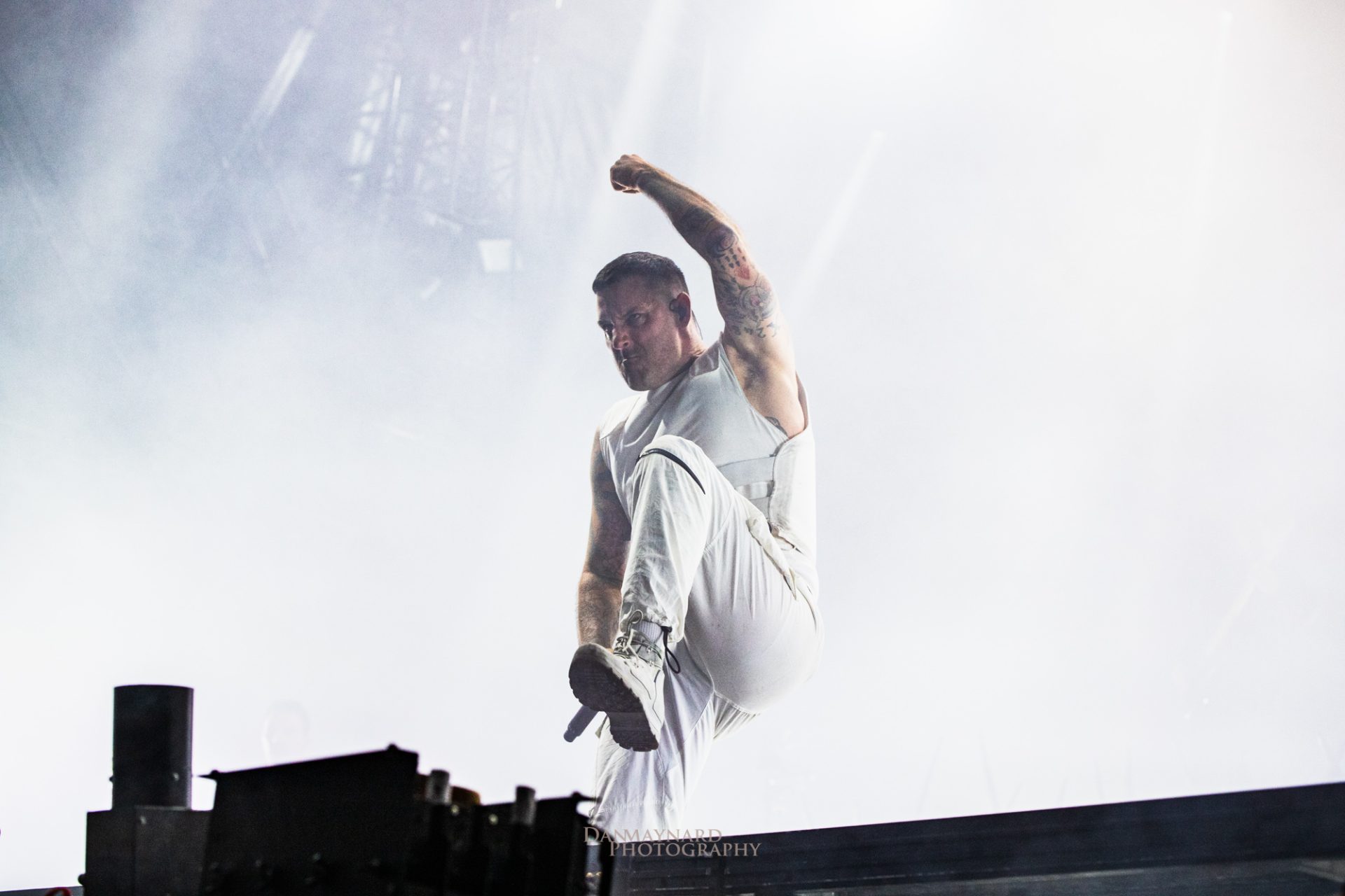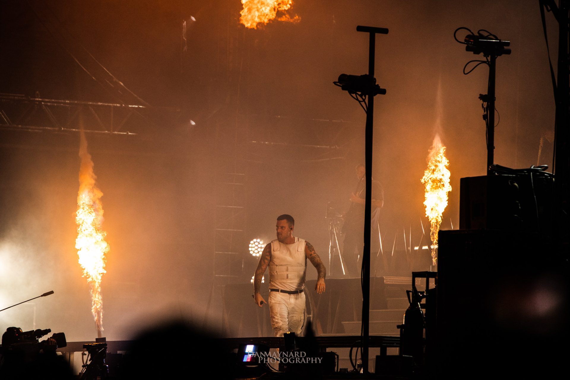 The stage screens go black. Darkness fills the showgrounds and an eerie noise begins to emanate from stage 2. Torchbearers descend upon the multi-tiered set right before Australia’s very own Parkway Drive literally explode onto the stage with Glitch.