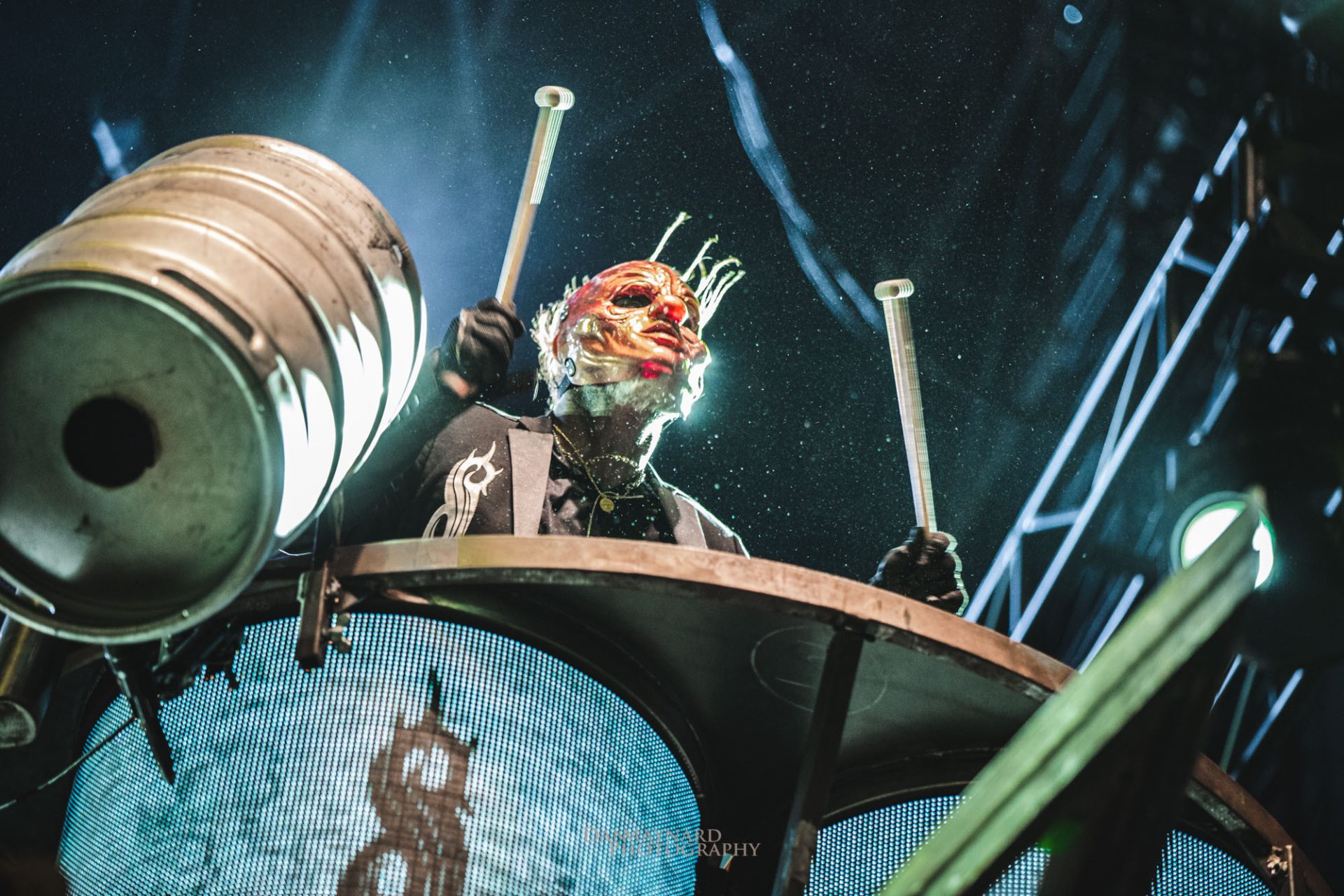 Taylor asks the crowd if they would like to hear just one more song to which a thunderous response is heard. The band snap into Duality, which sees Clown take a flaming baseball bat to a keg suspended to the side of the stage in a fit of fury and mayhem. As the song draws to a close, Taylor stops his comrades in their tracks. “Wait, wait, wait. I said, do you want to hear one more song?” he asks again before the Iowans kick full force in Custer before stopping and asking the crowd one last time if they want one more song. And it’s a doozy, it’s ferocious, it’s a classic, it is…Spit It Out. Now no performance of this song would be complete without the age old getting down on the ground and then launching to your feet when Corey yells “JUMP THE FUCK UP!” and it honestly never gets tired.