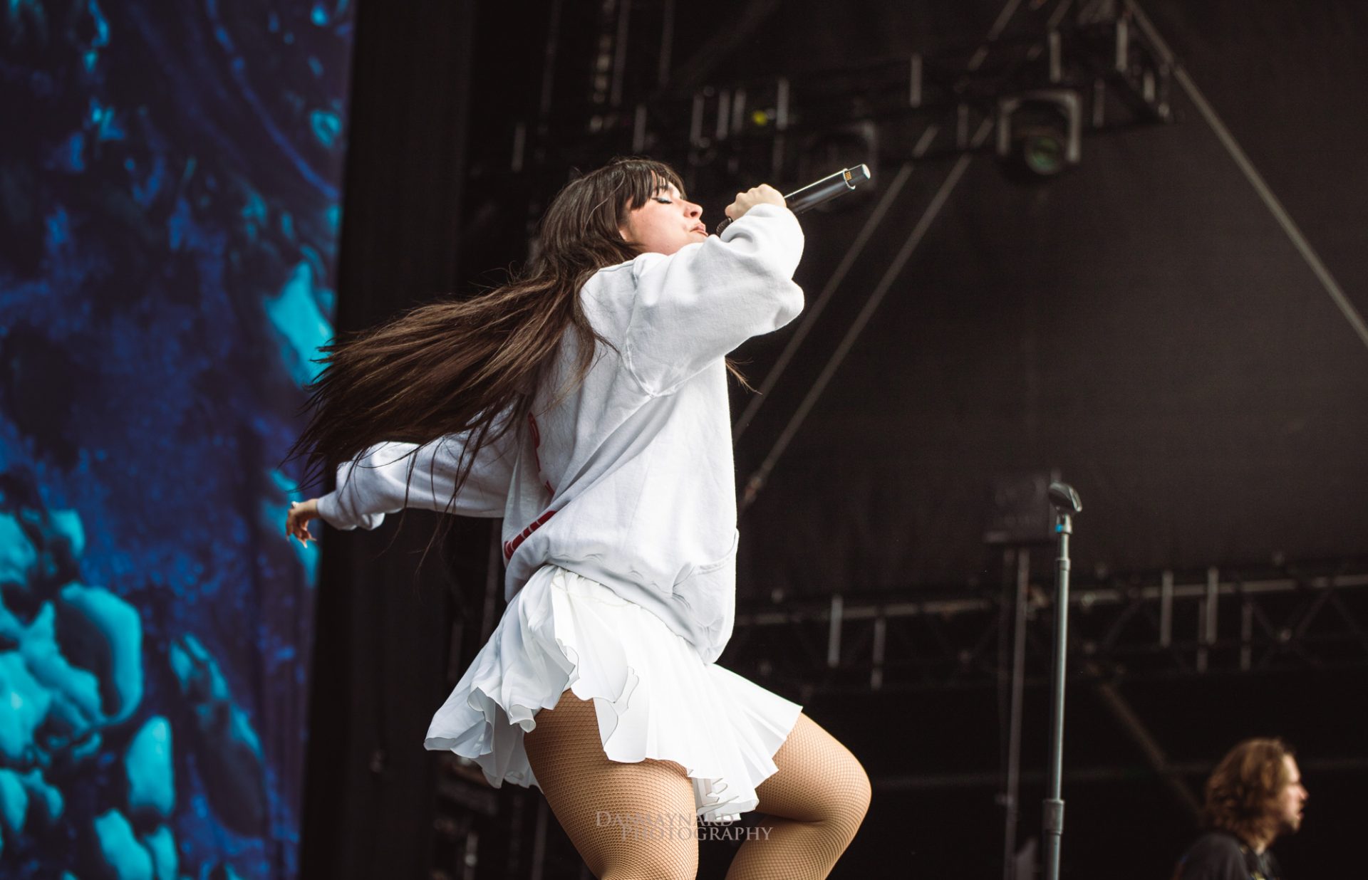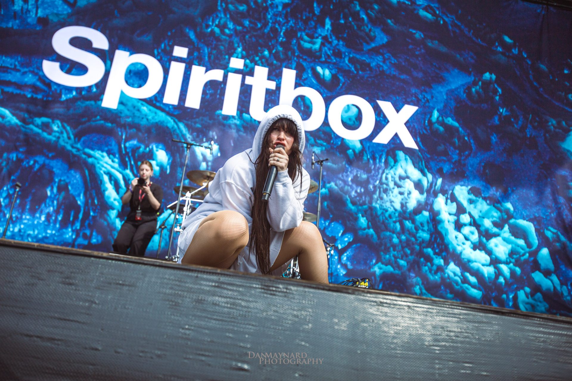 As Knocked Loose exit stage 2, the crowd at stage 1 begins to chant for the much anticipated arrival of Spiritbox. Vocalist Courtney LaPlante enters the stage donning a massive grey hoodie which despite the rising heat, remains on her for the duration of the whole set! Circle With Me opens proceedings with the crowd singing along to every word as LaPlante and her commanding stage presence dance about the place.