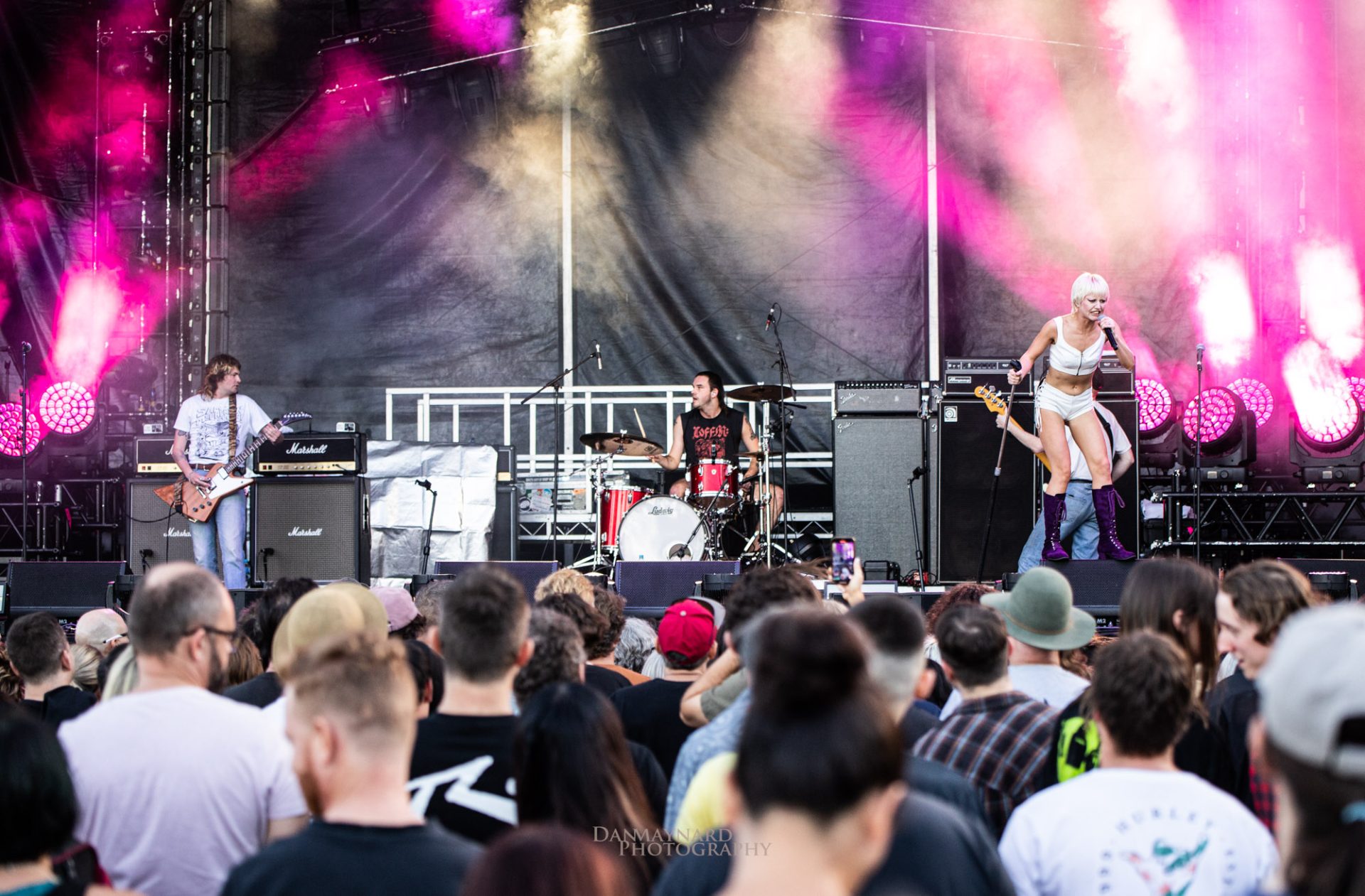 Amy Taylor from Amyl and the Sniffers looks like she might have just come out of the ring during the female wrestling interlude. She’s full of adrenaline, regardless and lets loose as she appears with her band in tow as they rip straight into a 15-song set heavily leaning on the breakthrough album Comfort To Me. The band is tight as hell, the sound is abrasive as you like and you cannot take your eyes off the scantily clad lead singer yelling out everything at the top of her lungs and dancing like… like… nothing else I’ve ever seen.