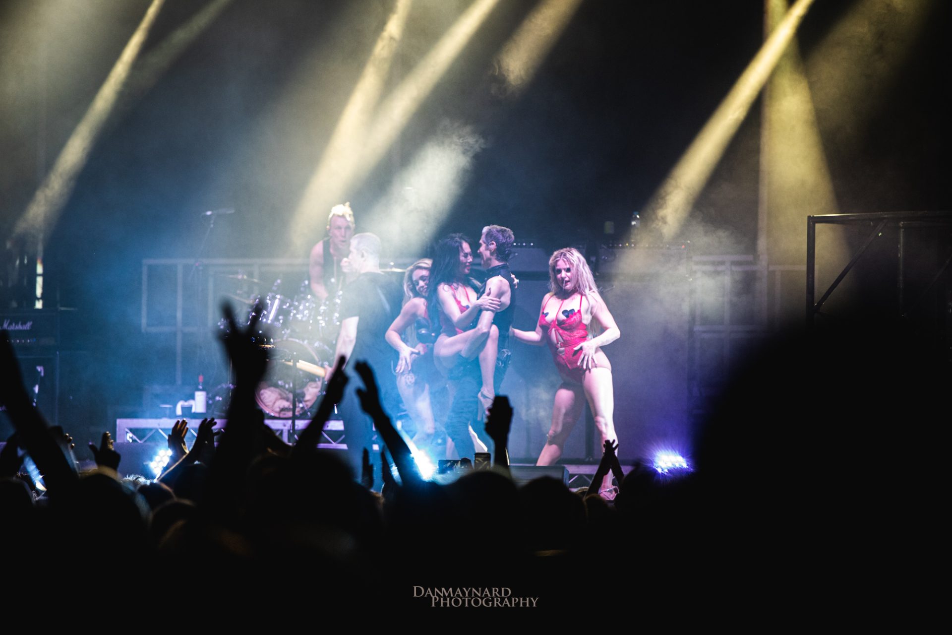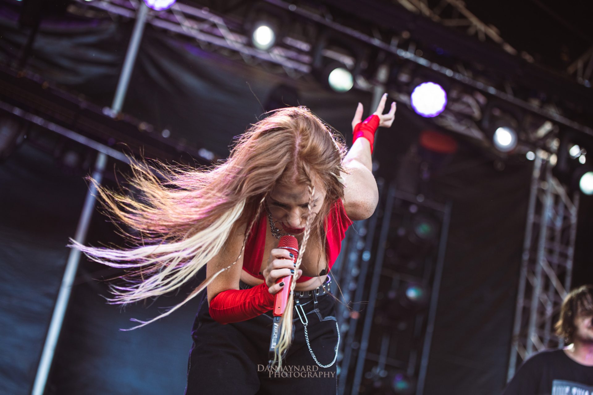 Redhook are next up and prove without a doubt that vocalist Emmy Mack knows how to get and maintain an audience’s attention. She is the last of the band to her stage and immediately throws herself into her performance putting her body on the line as her band do the same. Musically, the band wear a lot of early nineties nu-metal influences on their collective sleeve with the Limp Bizkit bent fully realised during a mid-song interlude of Break Stuff which was rapturously received by the sizeable crowd assembled. The band’s high-octane set is well received and ends with catchy banger, Bad Decisions.