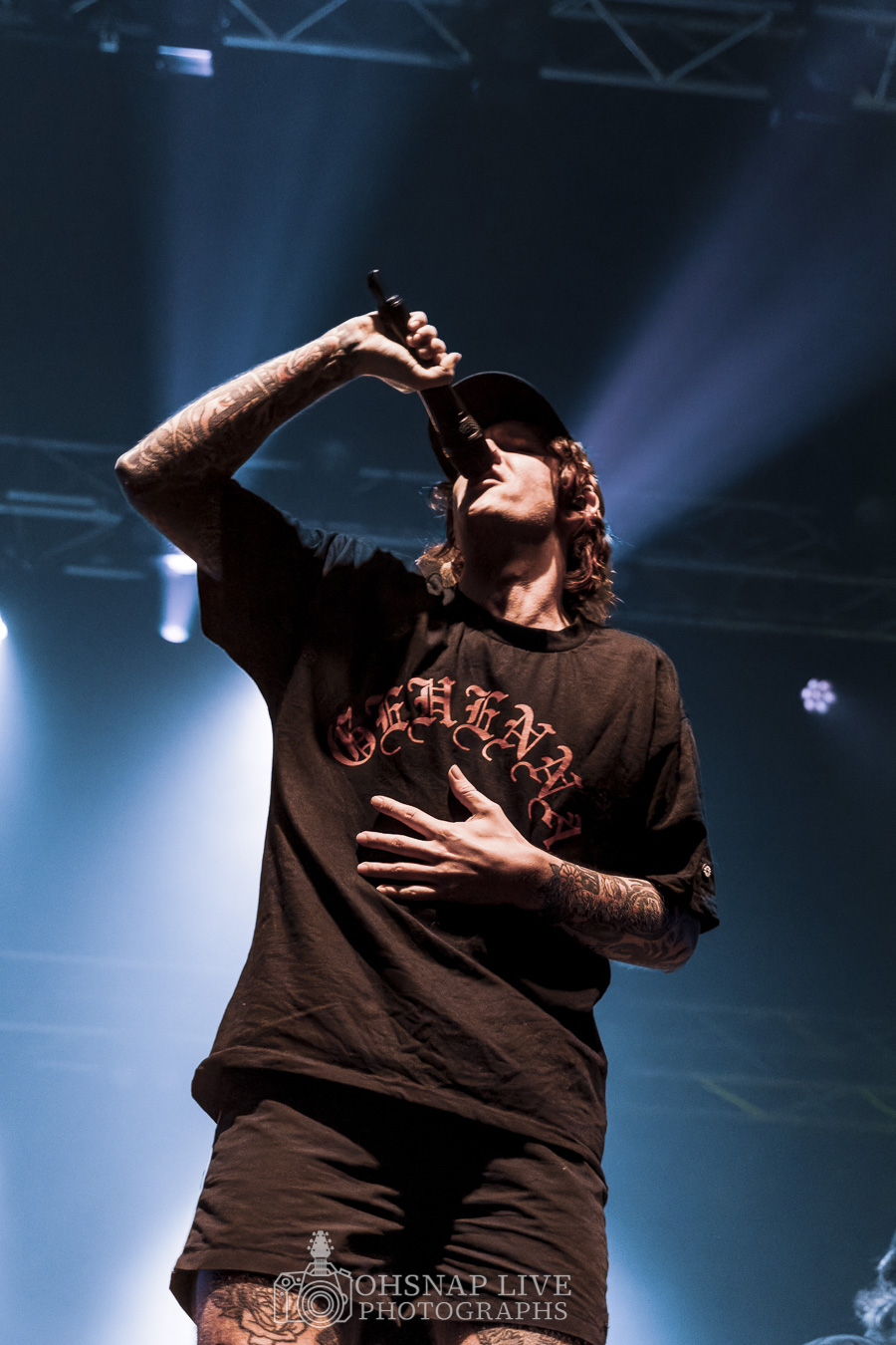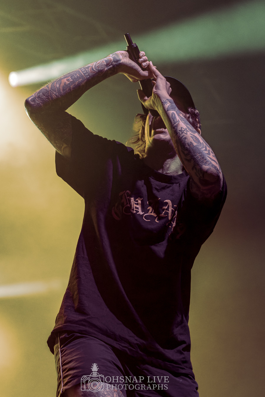 The fans were now ready, after being treated to such incredible supports they were ready. “Make Them Suffer”, the Australian metalcore sensation were being summoned. From the moment the lights dimmed, and the atmospheric intro engulfed the room, a surge of energy rippled through the crowd. With the prologue building everybody up. the anticipation was palpable as Make Them Suffer exploded into their opening track “Neverbloom”. Six and a half minutes of relentless deathcore played just as intently as it was 10 years ago upon release. The crowd was absolutely lapping it up. Screaming and singing along to every word. From the bone-crushing breakdowns to ethereal passages that sent chills down the spines of the crowd.