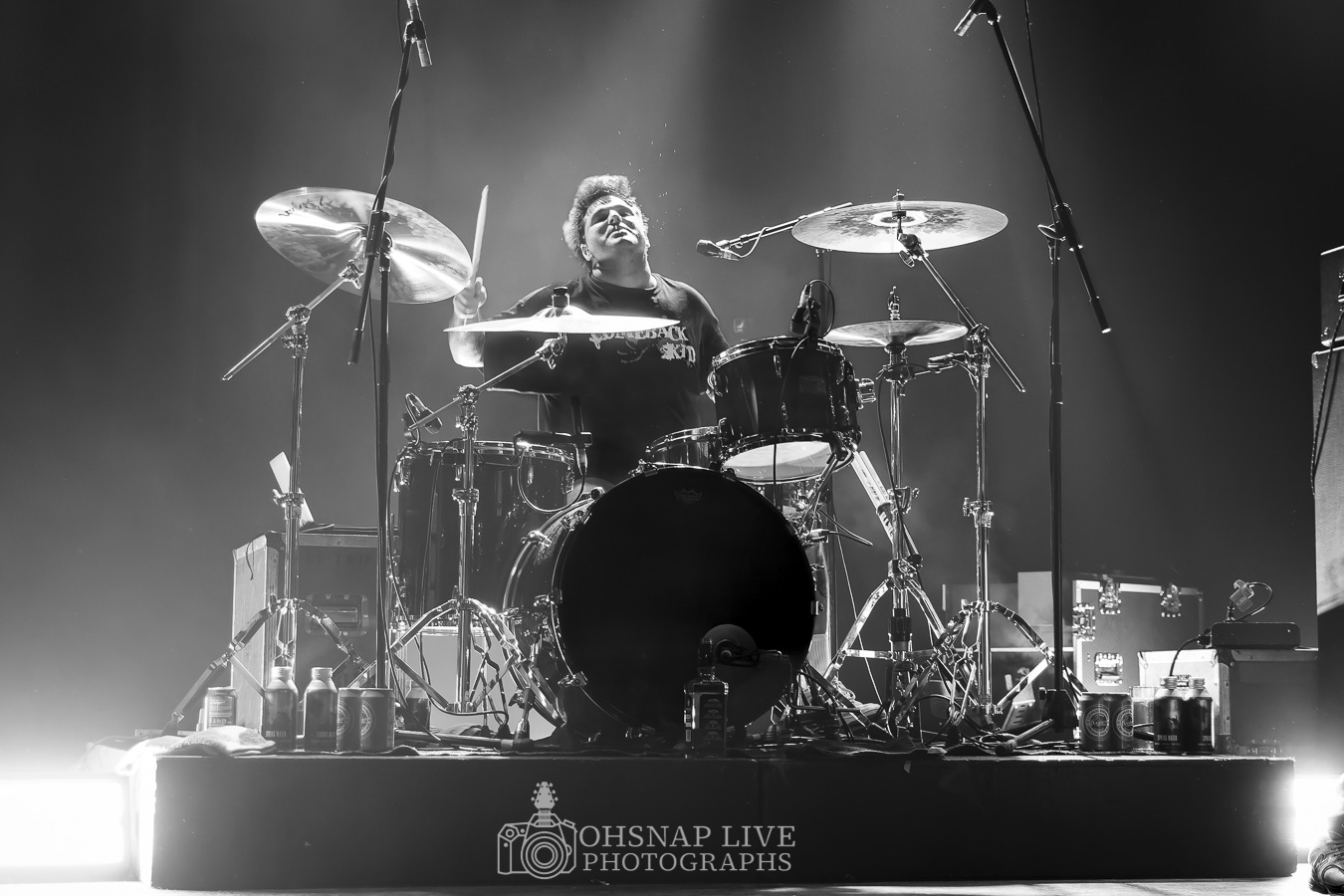 The crowd went wild during the performance of fan favourite “Friday Forever,” raising the noise to another level. John then took a moment to extend his appreciation to Dust and Eliza and the Delusionals, encouraging everyone to take out their phones, open their music streaming services, and follow the two bands’ latest albums. He jokingly demanded proof before continuing the music. As the night progressed, Trophy Eyes performed more new tracks like “What hurts the most” and “Kill.” However, John’s voice began to falter, and he admitted he would need the crowd’s assistance to finish the set.