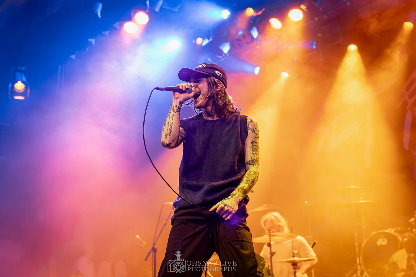 And then, in a thunderous explosion of sound and anticipation, You Me at Six took their rightful place on the stage. The crowd erupted in a sea of red as the drums crashed into the opening track, “Deep Cuts.” The British rock titans wasted no time in unleashing their sonic assault, led by the powerful vocals of Josh Franceschi. The chemistry among the band members was palpable as they delivered a tight-knit performance, driving the songs forward with relentless energy. With guitarists Max Helyer and Chris Miller weaving intricate melodies and the rhythm section of bassist Matt Barnes and drummer Dan Flint creating a pulsating foundation, You Me at Six commanded the stage with impeccable musicianship. The band’s showmanship and genuine interaction with the fans further deepened the bond, reminding everyone of the unifying power of music.
