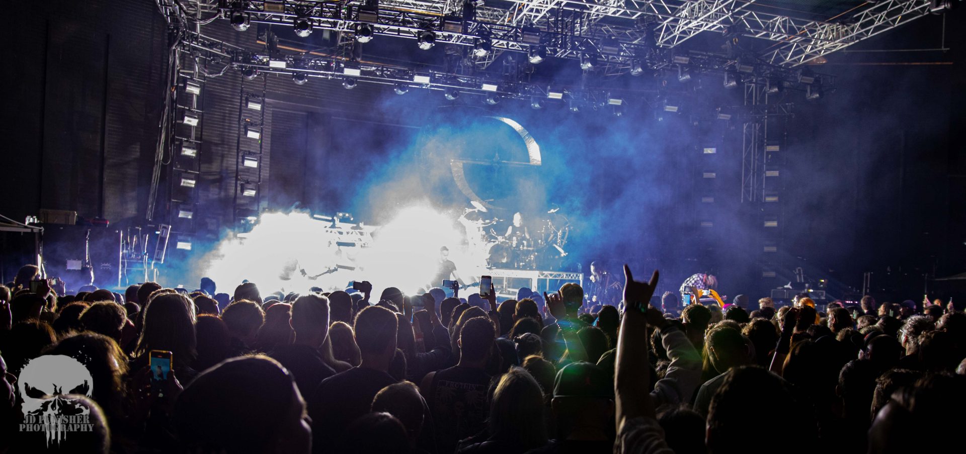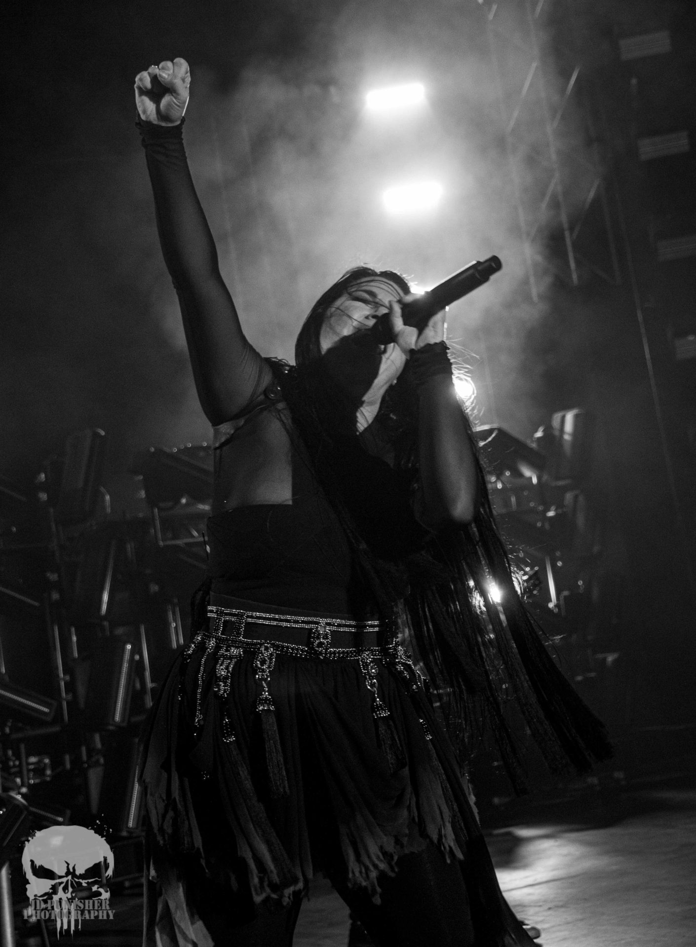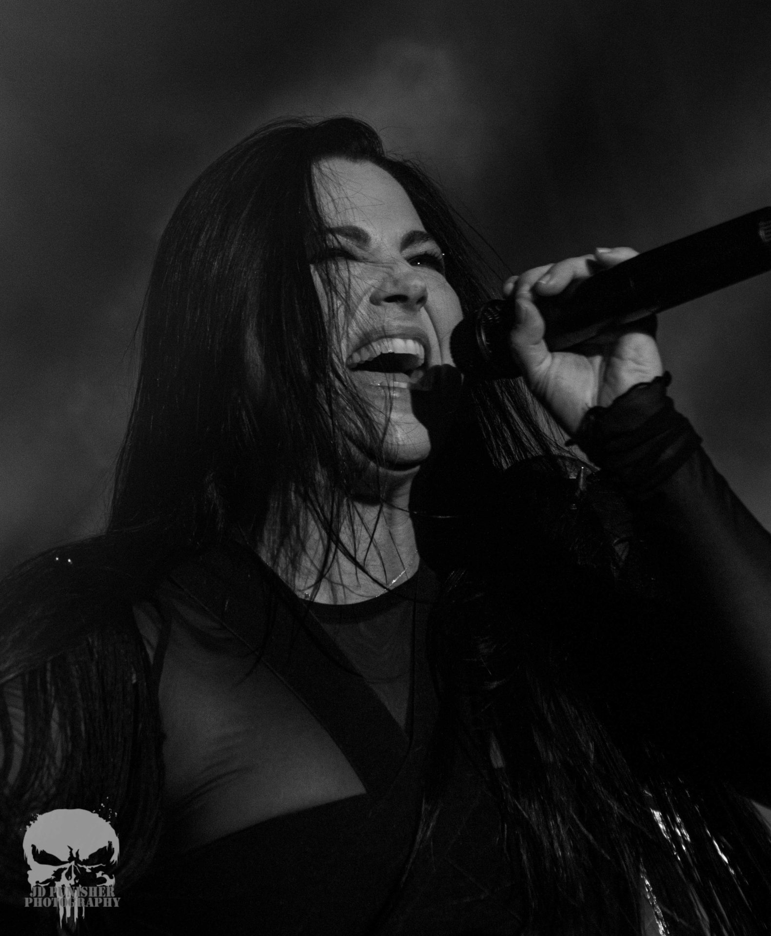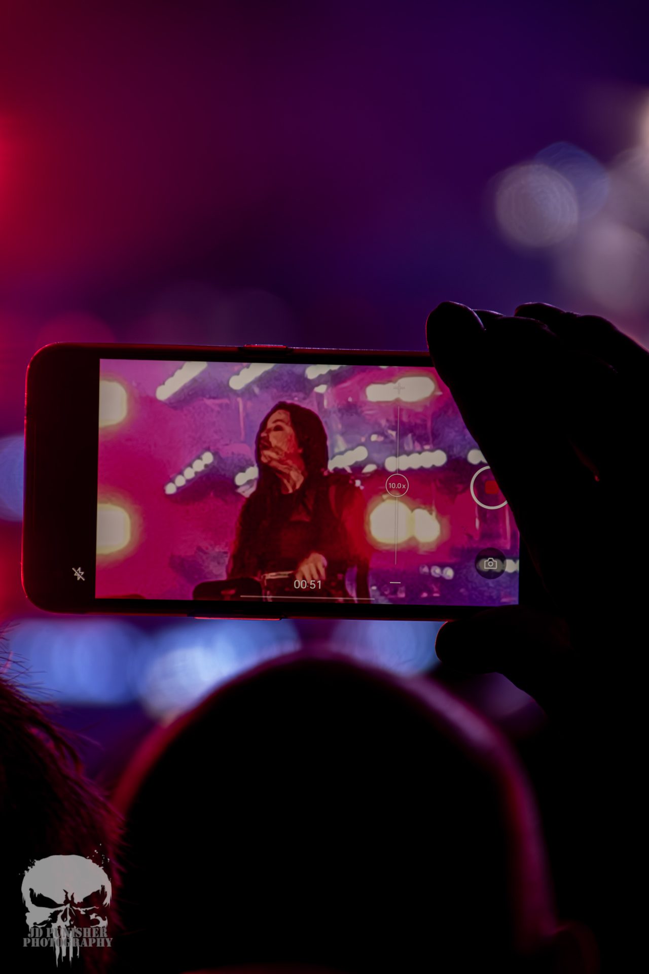 As the Evanescence logo began to glow, backlit by an impressive light show of lasers and strobe lights, a techno based intro emitted from the PA system, echoed back by a cheer and roar of voices from the adoring fans while the band members took to the stage. Finally, the voice of the gothmother herself, Amy Lee, took to the stage, warbling etherically as the crowd became entranced in her presence. Opening with Broken Pieces Shine, the crowd found their voice and regained the ability to move again, headbanging and dancing to the song.