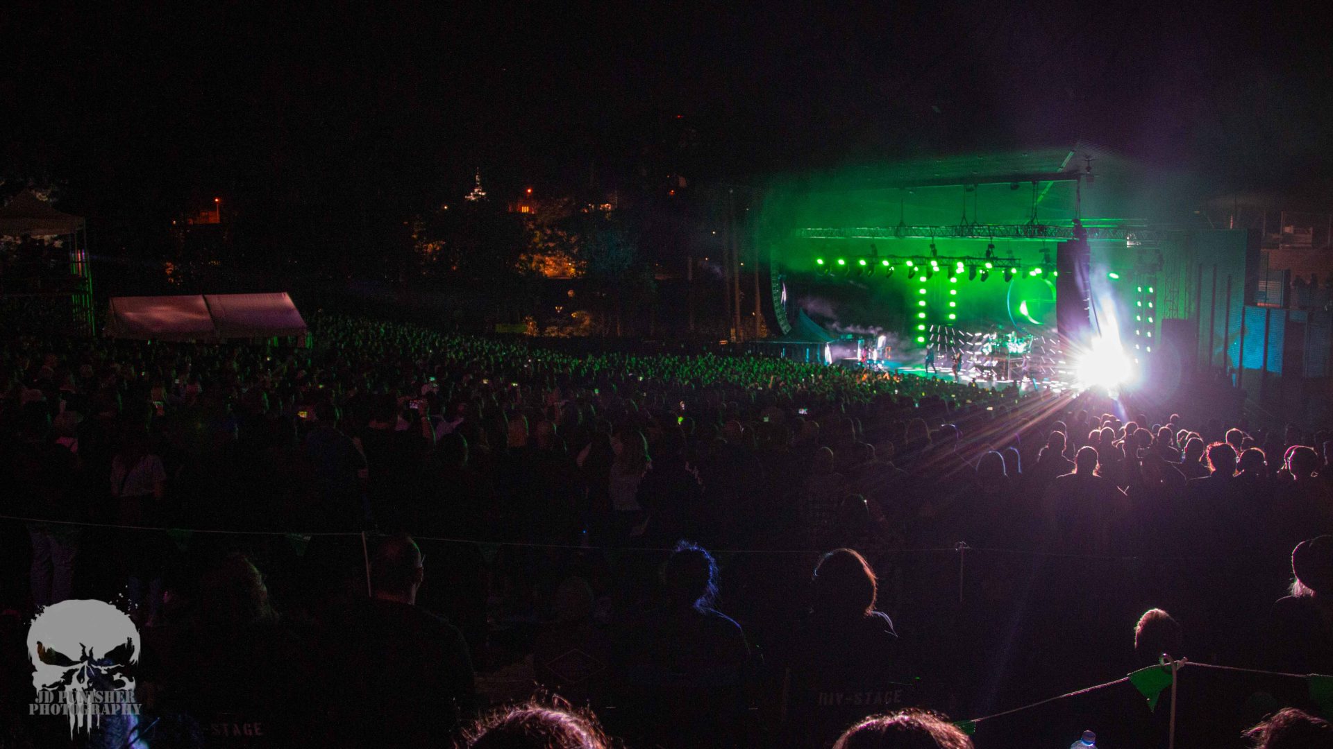 Melbourne’s The Beautiful Monument take to the stage to a spooky, synth intro before opening with Invisible from their 2019 album I’m The Reaper, and within a split second, the entire audience has risen from the blankets and towels strewn across the hilly embankment as the first sounds of pounding drums echo from Adam Pinzone, closely followed by riffs from Alex Manhire and bass from Amy McIntosh. By the end of the second track, Manifestation of 2017’s album I’m The Sin, the crowd are completely enthralled by frontwoman Lizi Blanco. The set is tight, featuring tracks like Burn and Misery, ending on arguably the bands most renowned single, Hellbound. While we know the main event is coming, the crowd is more than warmed up and longing for more.