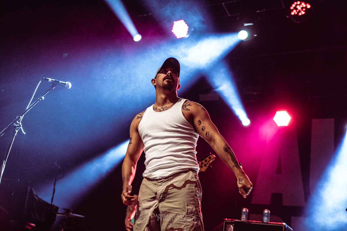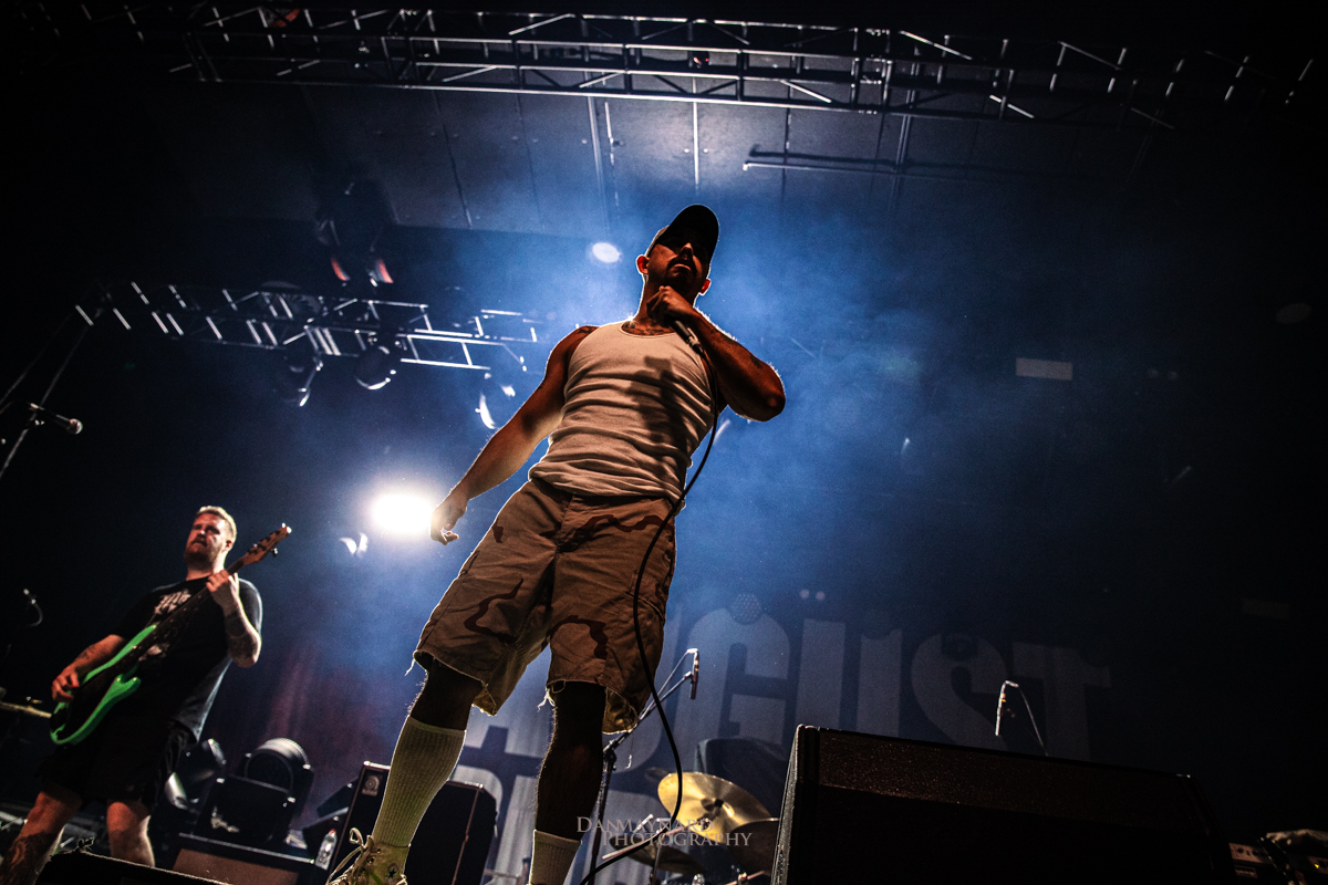 The house lights dim to shroud the stage in darkness as the band take to the stage, opening their set with Living In Tragedy. The darkness disturbed as the house lights burst back to life, strobing and flashing as bassist Christian Pulgarin spins and dances, not missing a beat. Brian Wilie‘s voice controls the crowd with his brutal performance.