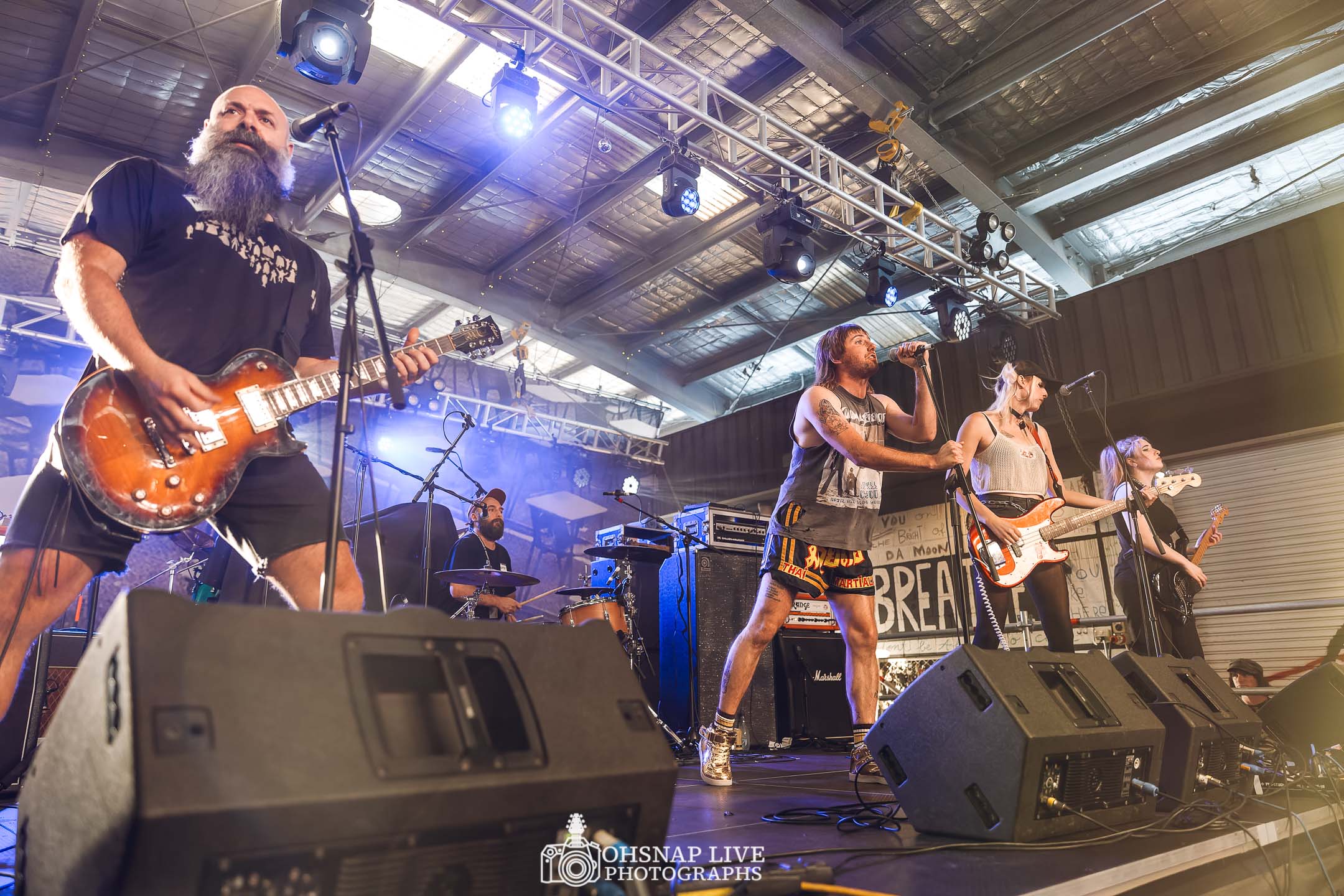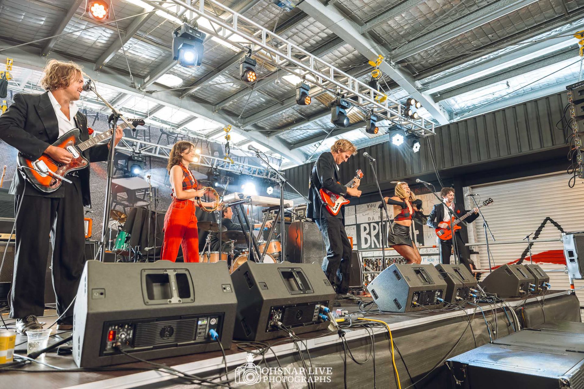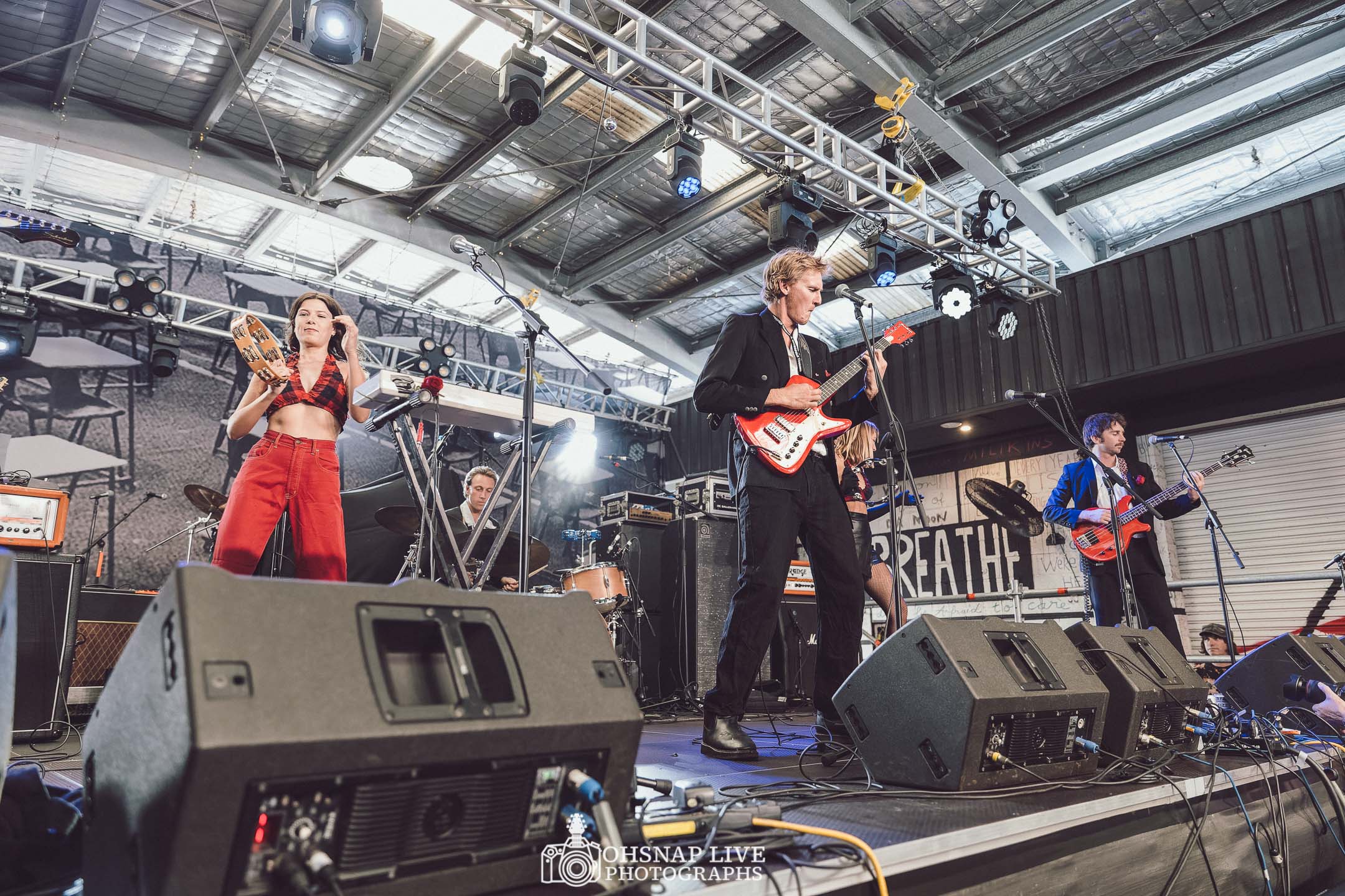 Cupid and the Stupids (CATS) to open the afternoon looking nothing short of dapper. The 6-piece Broadway punk/rock ‘n’ roll band from Byron Bay jump straight into a set of high-energy driven hits to set the tone if the afternoon. Dressed in their best with roses behind the ears, they look like they might bust out ‘Earth Angel’ at any moment, but they keep the emphasis on the punk with few extra tambourines, synths and even a tap-dancing solo keeping the crowd guessing. CATS bring an energy to the stage that resonates with the growing crowd who showed up early to witness a band with amazing chemistry and solid chops.
