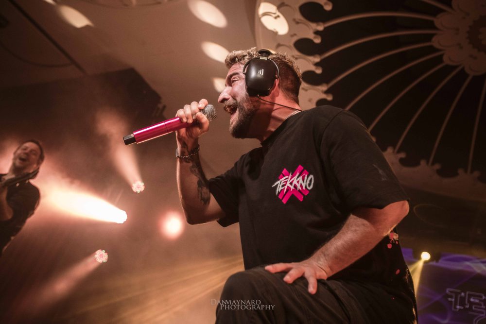 The cinematic Tekkno Train conductor provides a quick safety brief and runs system checks on the crowd, as well as informing them that standing still during the performance is unacceptable. Pfft, like that was gonna happen. This is it – the Electric Callboy.. ah… boys take to the stage to a deafening roar of cheers from the Brisbane punters in their mullet wigs, fluro spandex, fake moustaches and aerobics gear. The whomping bass initiates the ride on the Tekkno Train and despite the absence of co-frontman Kevin Ratajczak, who had headed home for a family emergency as announced on the bands instagram story, the gang of comedic musical geniuses are in perfect form!
