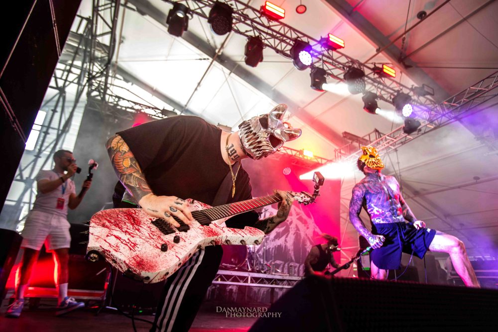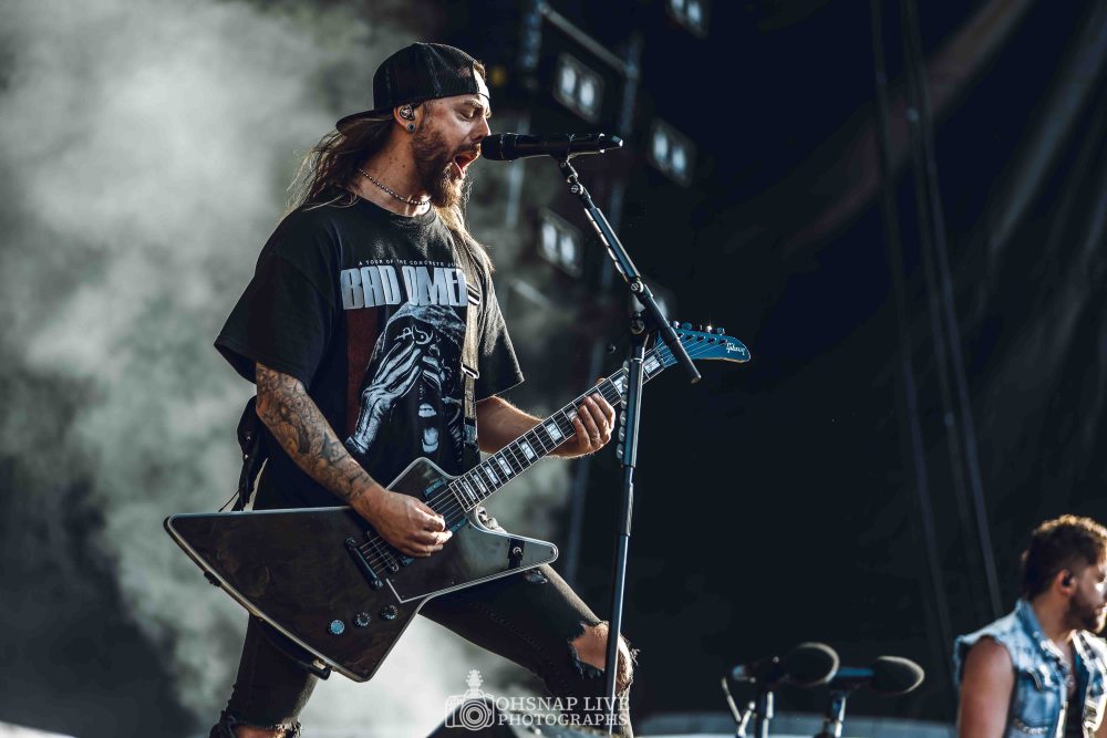 Next up in the main arena are Welsh metal heroes Bullet For My Valentine, who never cease to amaze with their intricate skills and powerfully energetic songs. They open strong with Knives off their latest self-titles effort and proceed to power through a set of absolute bangers such as Your Betrayal, Four Words (To Choke Upon) and the classic Tears Don’t Fall. Singer guitarist Matt Tuck is in awe of the energy in the crowd despite the heat, claiming he’s “fucking melting” on the stage. If you’ve never see Bullet… live, you are missing out!