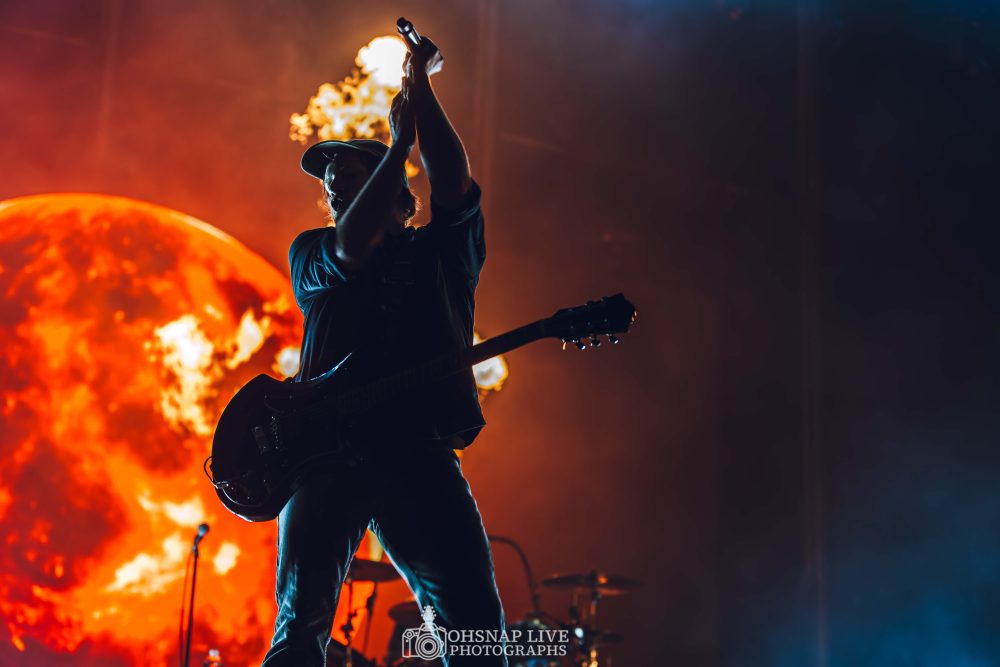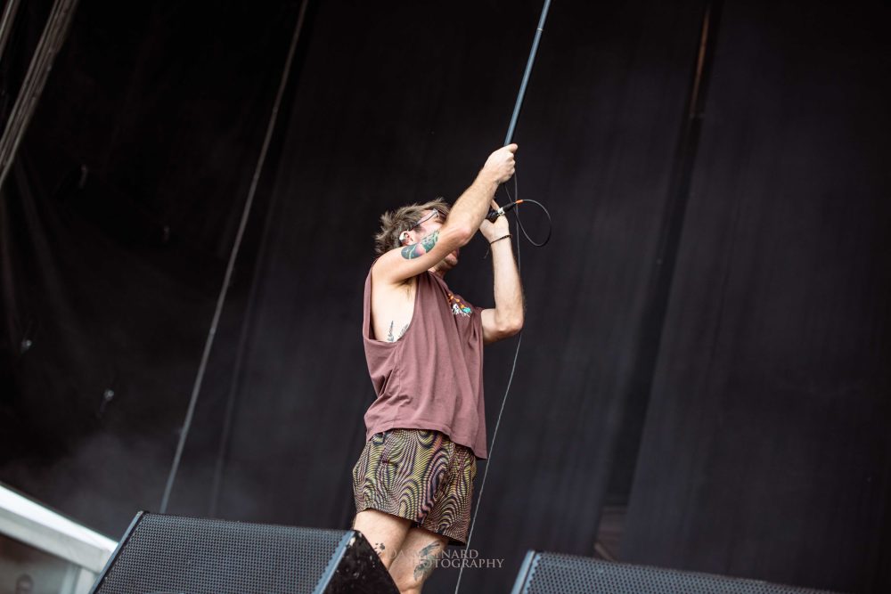 After PVRIS’ dance-happy set, the main stage crowd shifts from Stage 1 to Stage 2 for another dance fest curated by England’s genre-bending outfit Enter Shikari. Rou Reynolds and gang are in fine form as they dance around the stage urging the crowd to “get moving!” which opening song {The Dreamer’s Hotel} most certainly does. Latest hit A Kiss For The Whole World goes down a treat as Anaesthetist sees Reynold get amongst the sweaty crowd action.