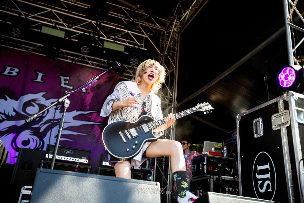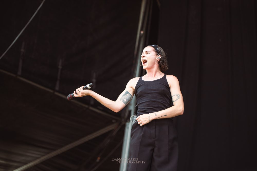 Having the ever-so daunting task of opening the main stages is American trio PVRIS who just the day before had to cancel their appearance at the Sydney edition of Good Things and today are powering through an illness to perform for the crowd that has gathered early on. You wouldn’t tell though, as singer/guitarist Lynn Gunn’s vocals cry out through the hot morning air getting the crowd moving and shaking with songs like My House and Anywhere But Here.