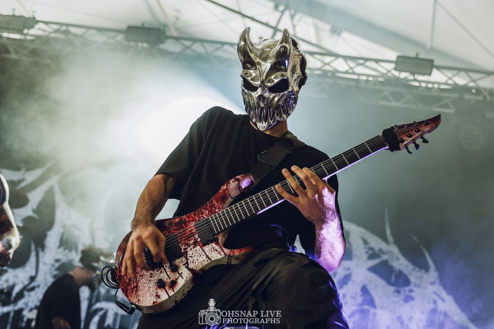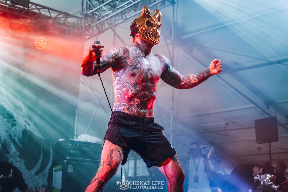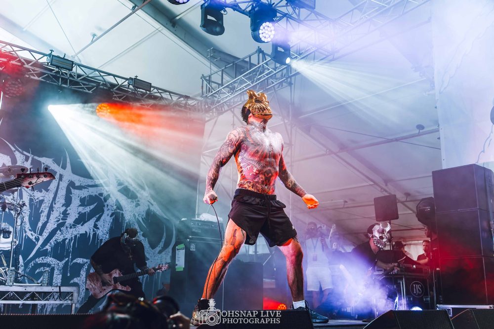Next up in the tent-come-sauna is the moment a lot of people have been waiting for; the arrival of Russia’s metal titans Slaughter to Prevail to Australian shores. After obliterating Melbourne and Sydney prior to today, Alex Terrible and his masked cohorts come out to a rapturous response and waste no time showing the audience what they’re made of. The intense pit seems to be a bit much for some as people constantly flock in and out of the chaos as they belt out such songs as Bonebreaker and Viking. If the response the band have received at this run of shows is anything to go by, it won’t be long before we see them return to our fair country.