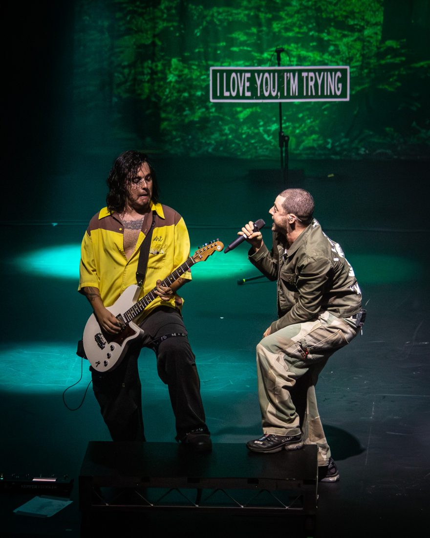 As the stage lights dimmed, the crowd cheered the lowly mic stand holding a street sign stating “I LOVE YOU, IM TRYING“, the recent album from grandson, as they waited for the headliner to take to the stage. Unfortunately, their patience would have to endure as the set-time came and went. Finally the room darkened as the crowd whooped and cheered as Queen‘s Bohemian Rhapsody played over the house PA. Obsvisoulsy the entire crowd joined in singing along to the classic anthem, cheering to themselves afterwards.
