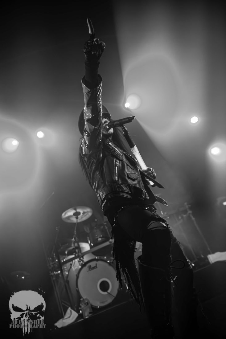 I can imagine selecting a support act for ANY show would be difficult, but sometimes, a band is put on the bill that just fits perfectly. Tonight, it’s Terror Parade. Adorned with black leathers, lingerie, chains and face paint, the four piece local outfit wastes no time working the crowd into a frenzy.