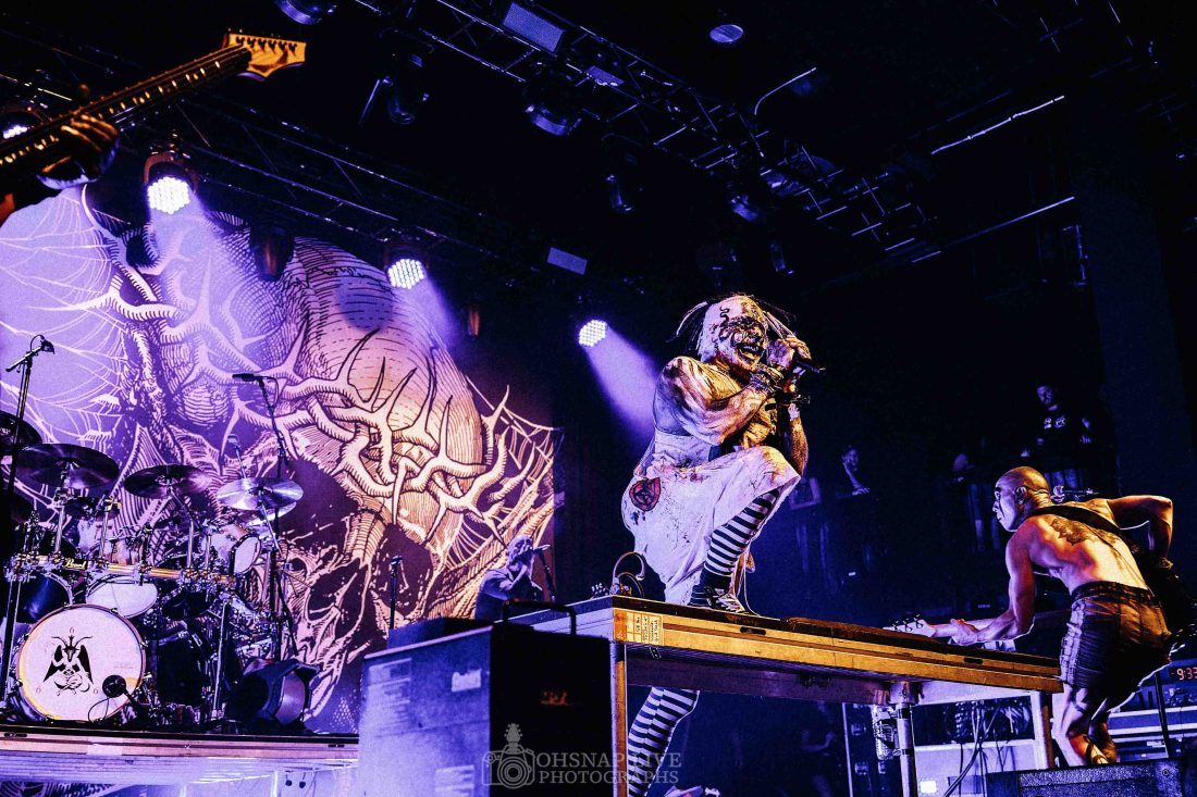 As the LD.50 opening sample Monolith plays through the PA, Mudvayne graces the stage donned in their classic early-era make-up and overalls garb to a thunderous reception and don’t fuck around going straight into the massive hit Not Falling.