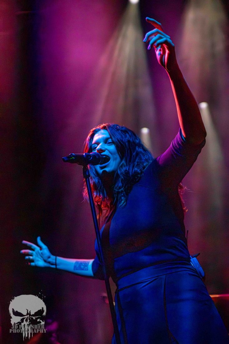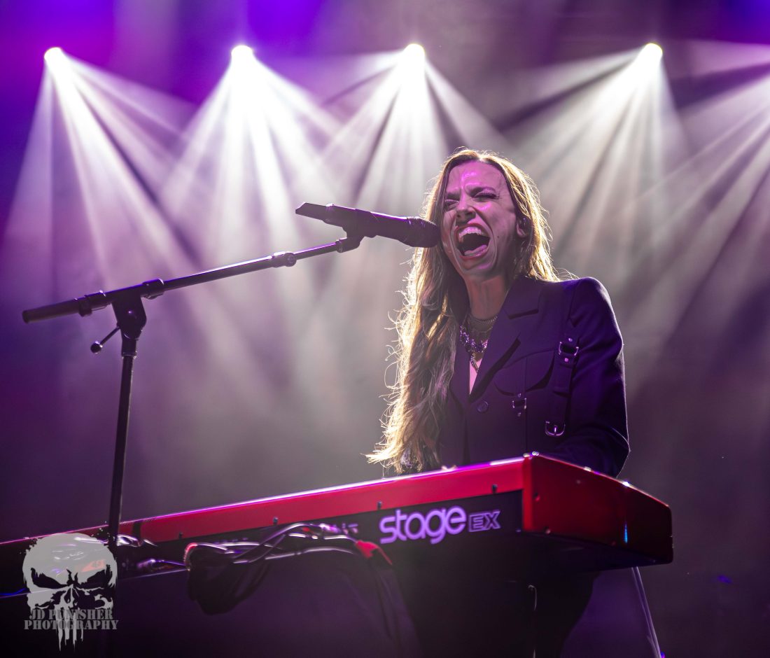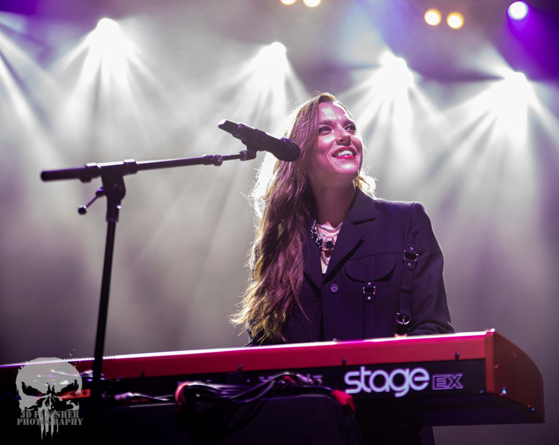 As the stage grew gloomy, the lady herself, Lzzy Hale, struts across the dimly lit stage to a piano, crooning the crowd with a medley, demonstrating her vocal prowess that cuts the silence as the crowd watch captivated.