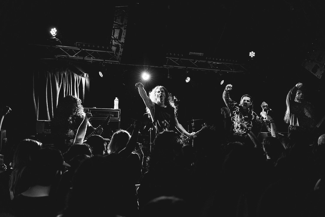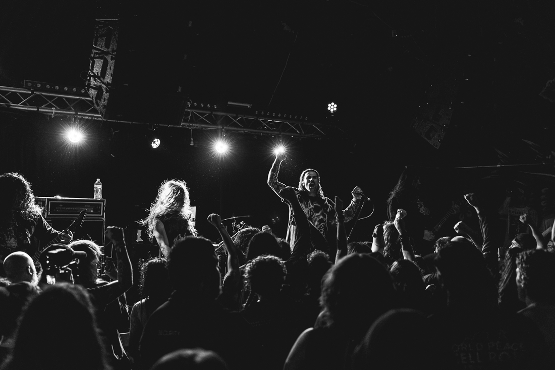 The stage was then left empty and dark, as each member of headline act Gatecreeper made their way in front of the tireless mass. Frontman Chase Mason wasted little time, instructing all headbangers to report to the front of the stage as opening track “Sweltering Madness” is abruptly unleashed upon the room. The influence of Swedish death metal at this moment was simply undeniable; the distortion and sustain of the guitars, almost overwhelming.