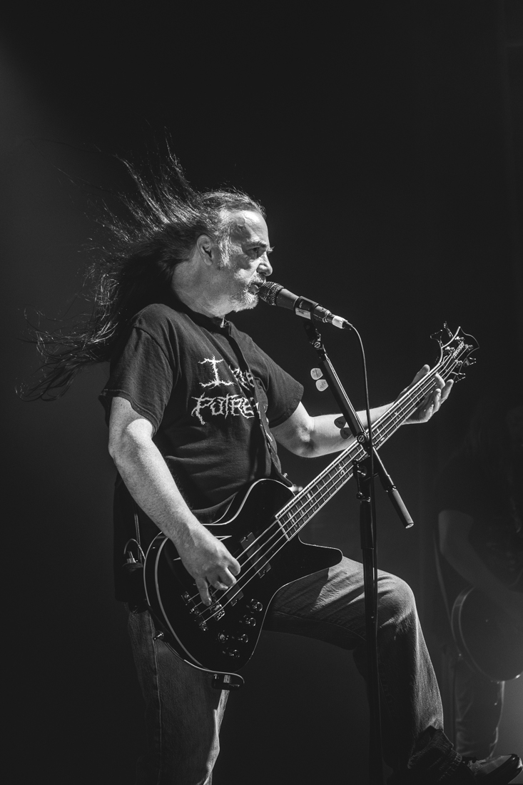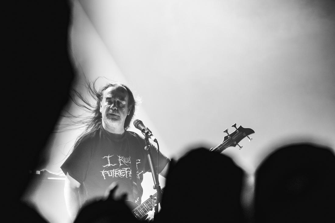 Lead vocalist/bassist Jeff Walker, however, was having none of this – cheekily goading the crowd into further mosh participation by referring to us as “chicken parmis” and bestowing upon us the honour of inventing the worlds first “circle shit” before laying down a “big turd” in the form of a song from as far back as 1986.