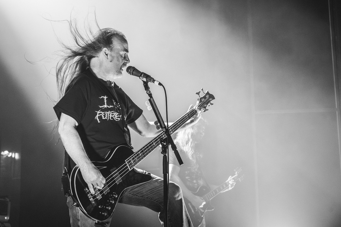 These death metal trailblazers’ set merged both classic and modern musical styles featured across a catalogue spanning almost forty years, delivering a timeless live sound. Carcass utilised both audio samples and visual media as part of their stage show, with some die-hard fans recognising their favourite hits before the instruments even started playing. After over a dozen standout tracks and a drum solo, the mass of devout headbangers was also treated to a double encore, having insisted on such by shouting “CARCASS!” in repetitive unison until their demands were met.