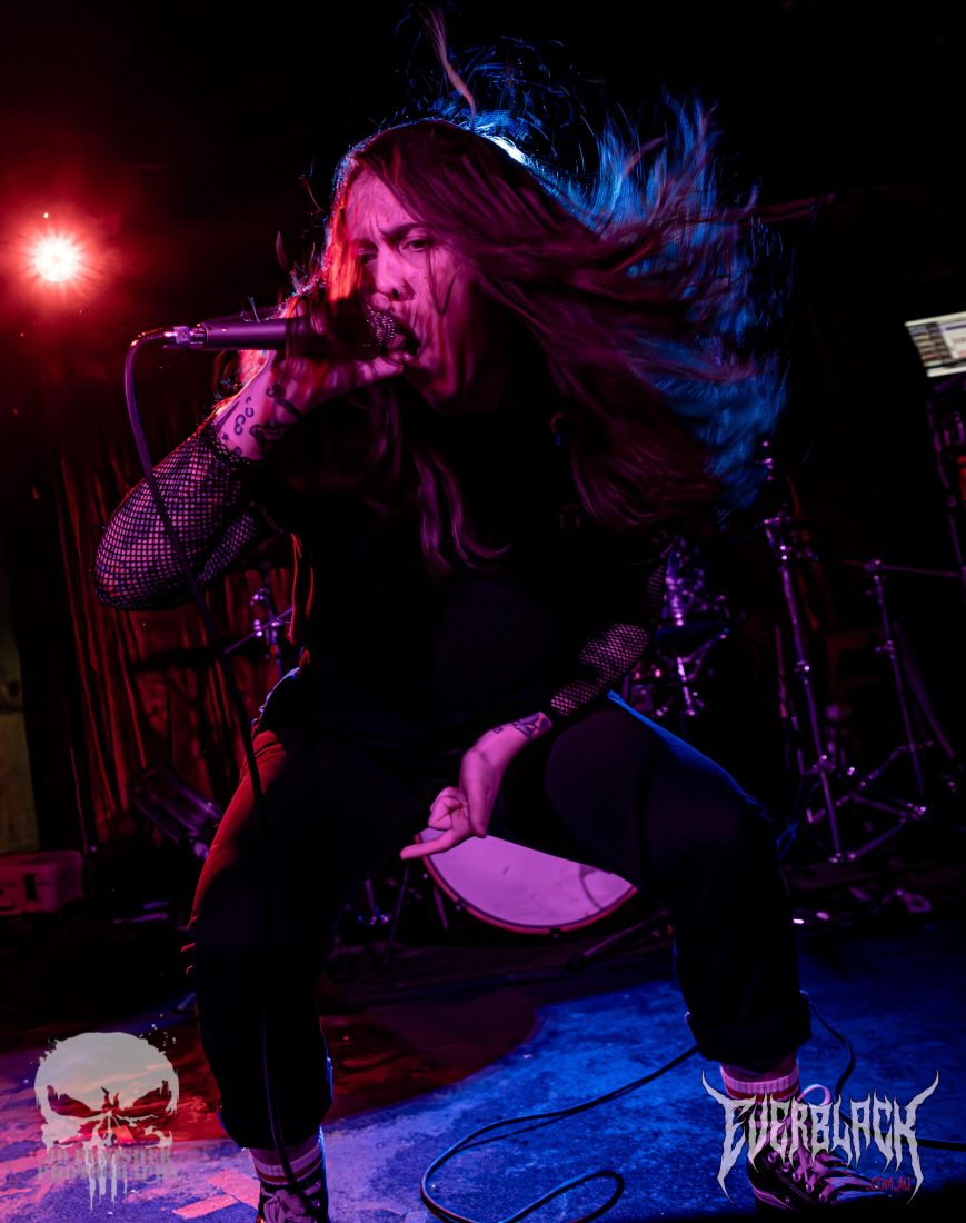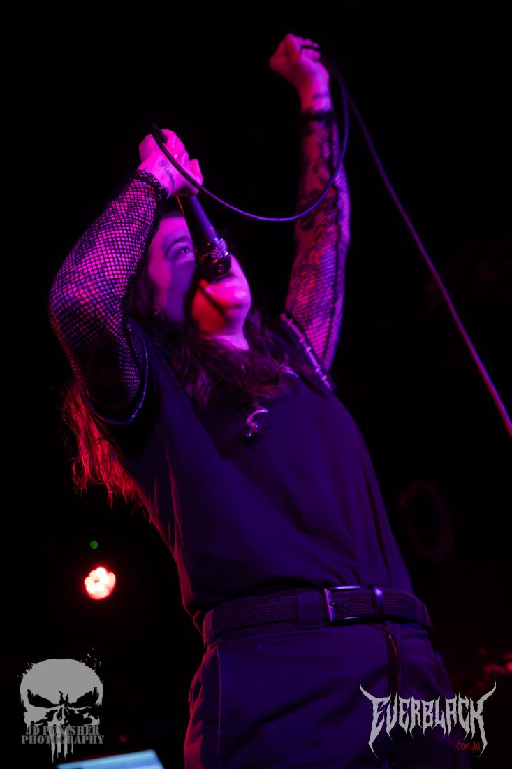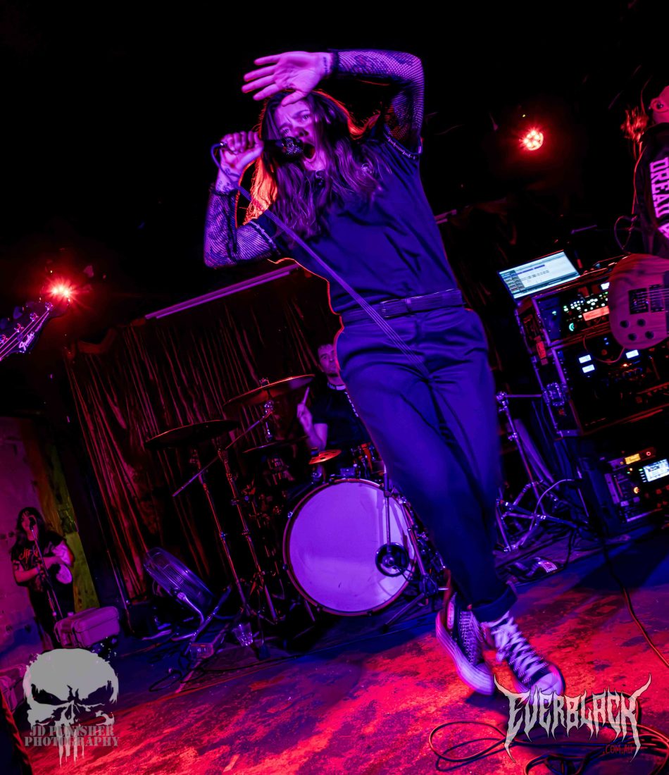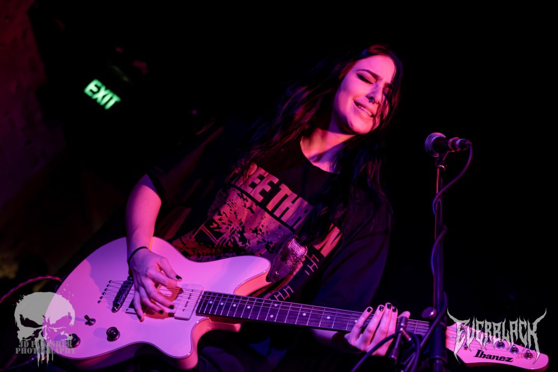 After hyping up the new EP and asking the crowd what their favourite tracks were from it, Amy asked “How about just a hardcore banger?” before jumping into Odyssey. Following the track with one of the bands most impressive songs, Hang.Draw.Quarter, which signaled the end of the EP tracks. The final two tracks, Take The Pill and Dread Addict, are clear crowd favs.