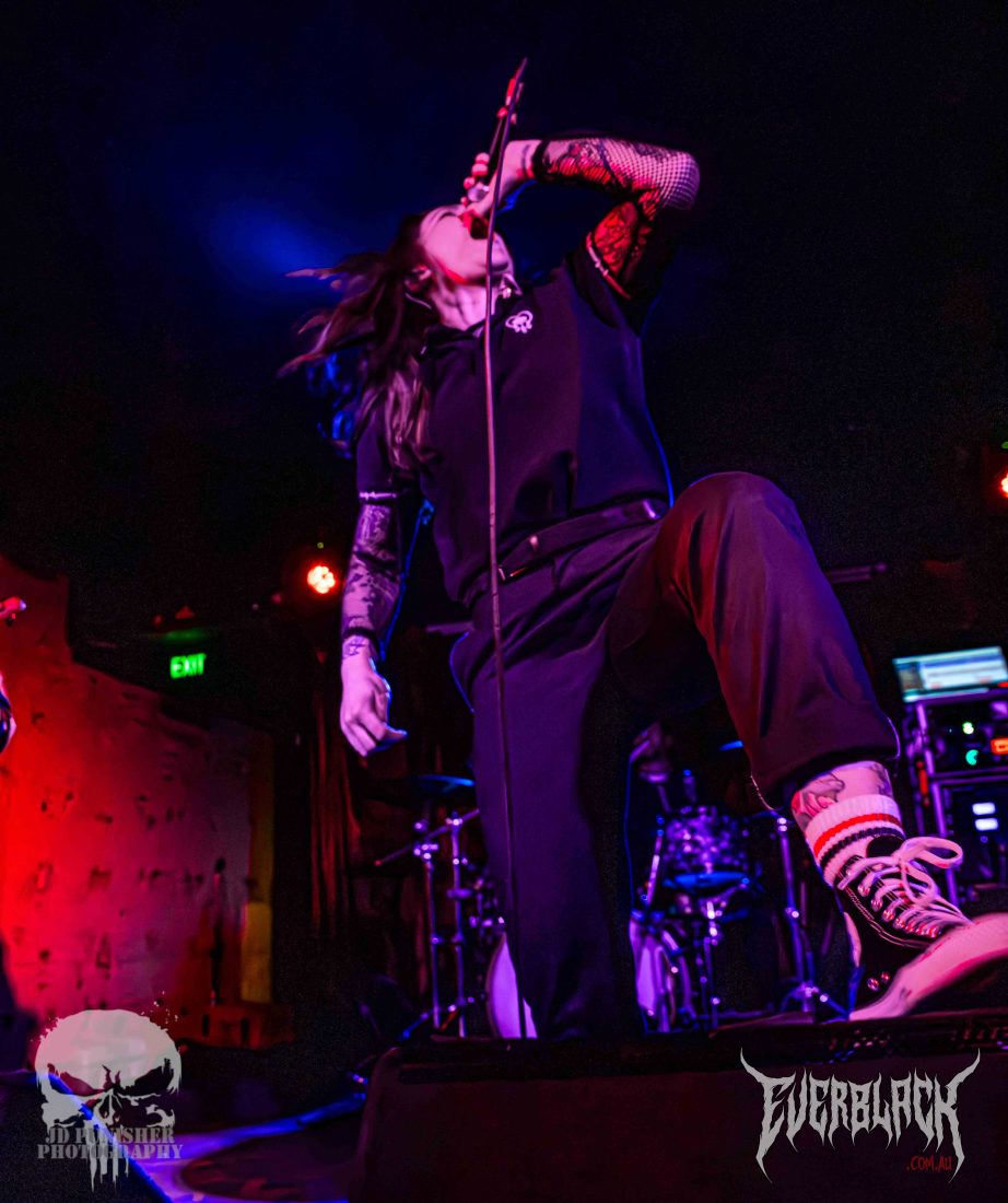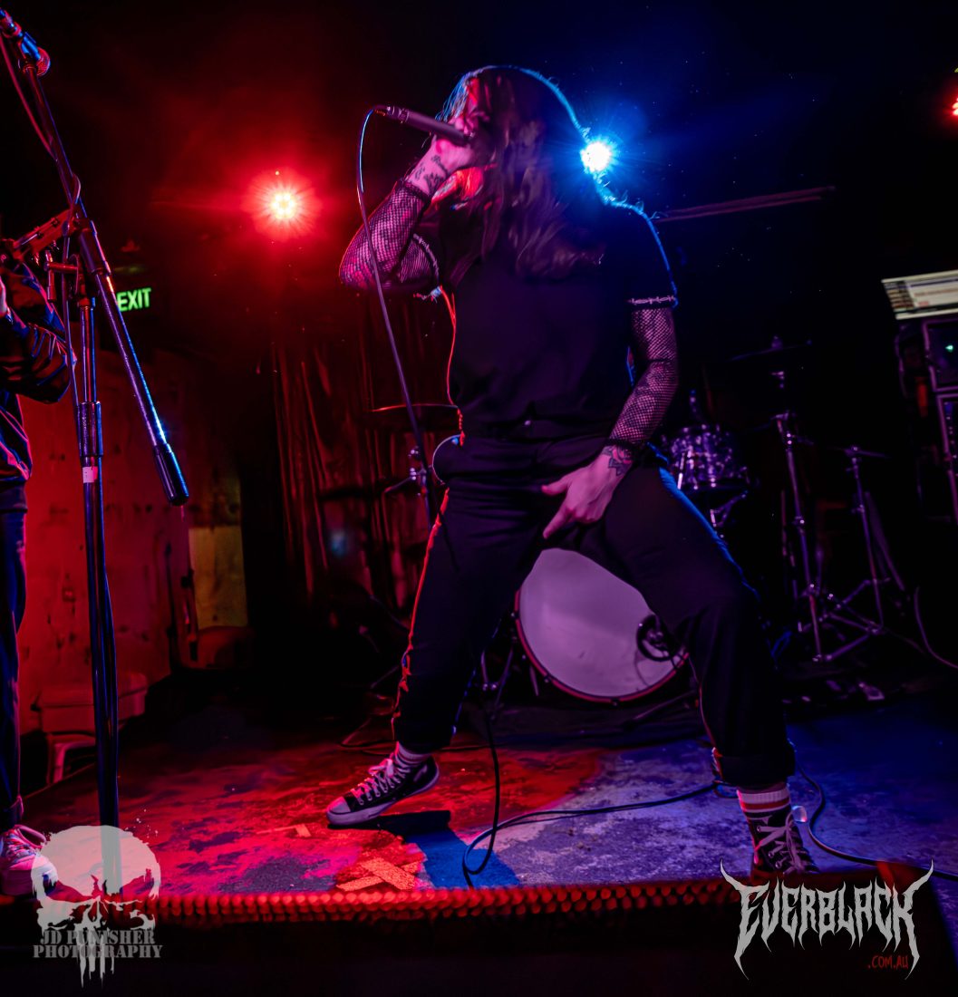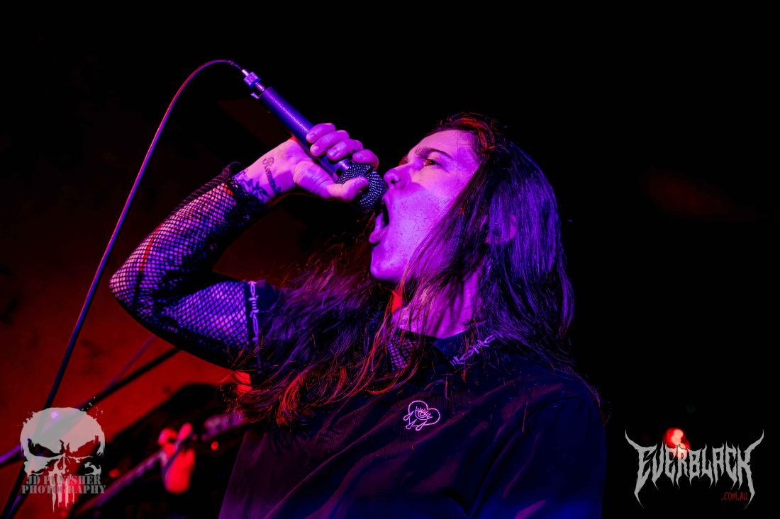Jesse Hudson‘s vocals are punchy and powerful, and the entire set is so full of energy that time seems to move faster than their riffs. True to their influences (such as KublaI Khan and Alpha Wolf), the set is a blur of blood curdling screaming vocals, flurry of thunderous drums, and raging, chugging guitars. The brissy lads hype the crowd up more and more as their set continues on, serving them up for the next supporting act.