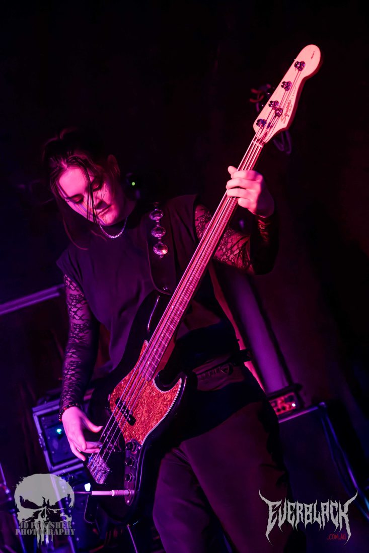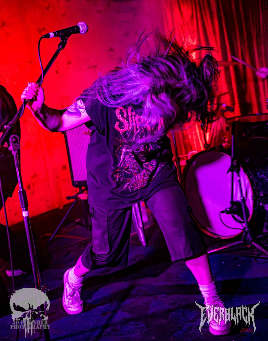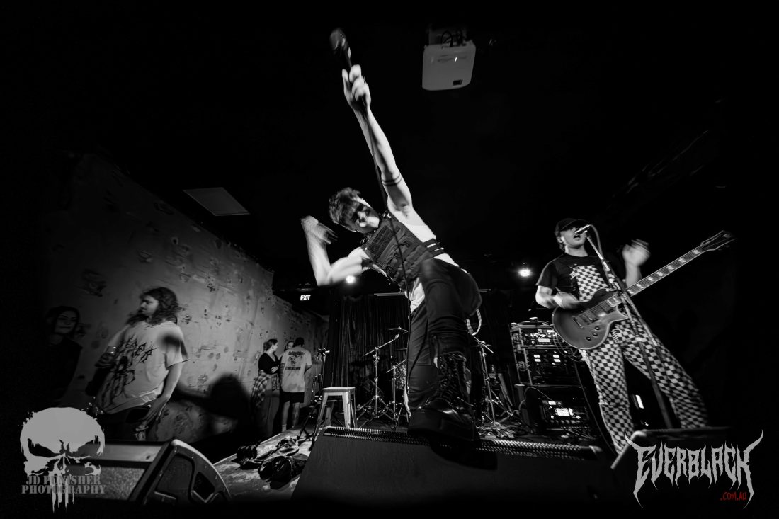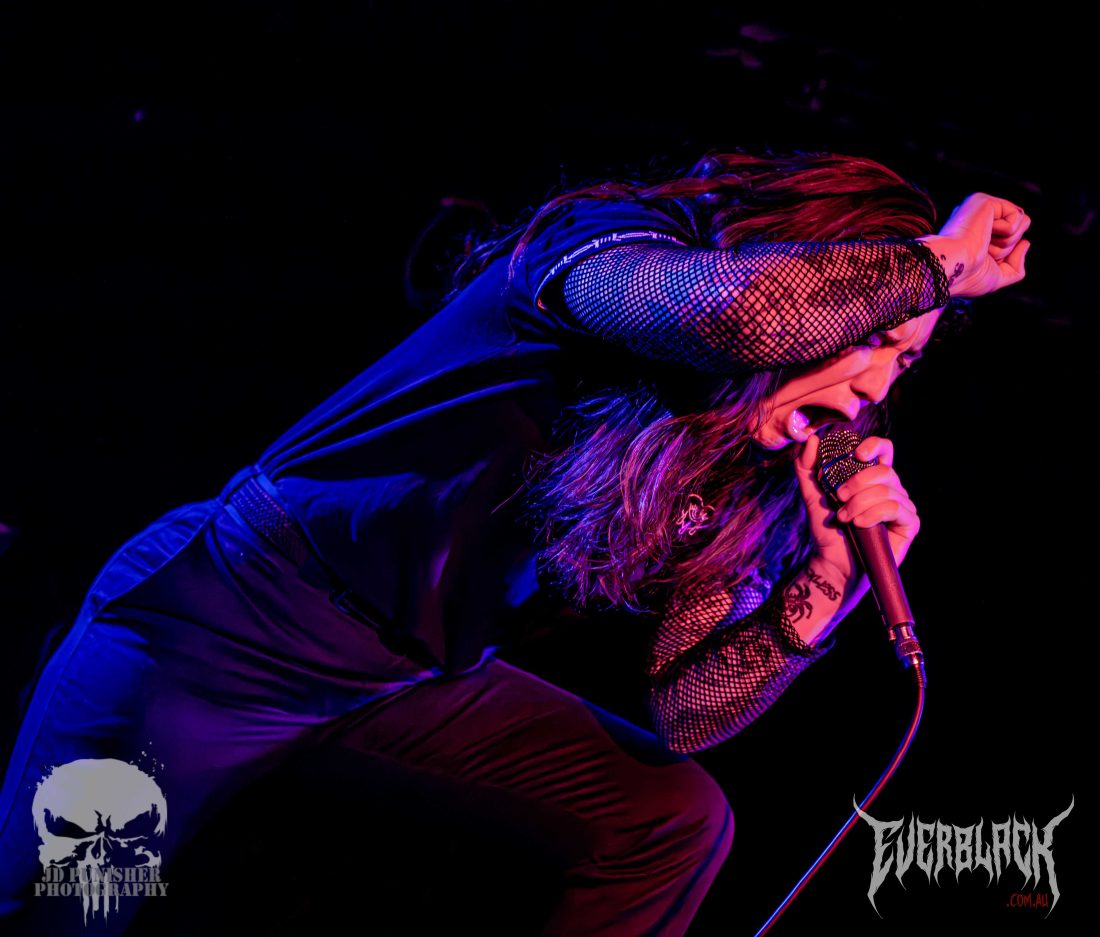 Jesse Hudson‘s vocals are punchy and powerful, and the entire set is so full of energy that time seems to move faster than their riffs. True to their influences (such as KublaI Khan and Alpha Wolf), the set is a blur of blood curdling screaming vocals, flurry of thunderous drums, and raging, chugging guitars. The brissy lads hype the crowd up more and more as their set continues on, serving them up for the next supporting act.