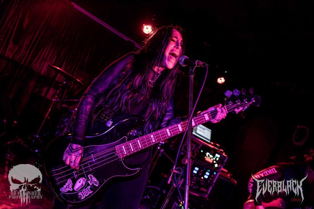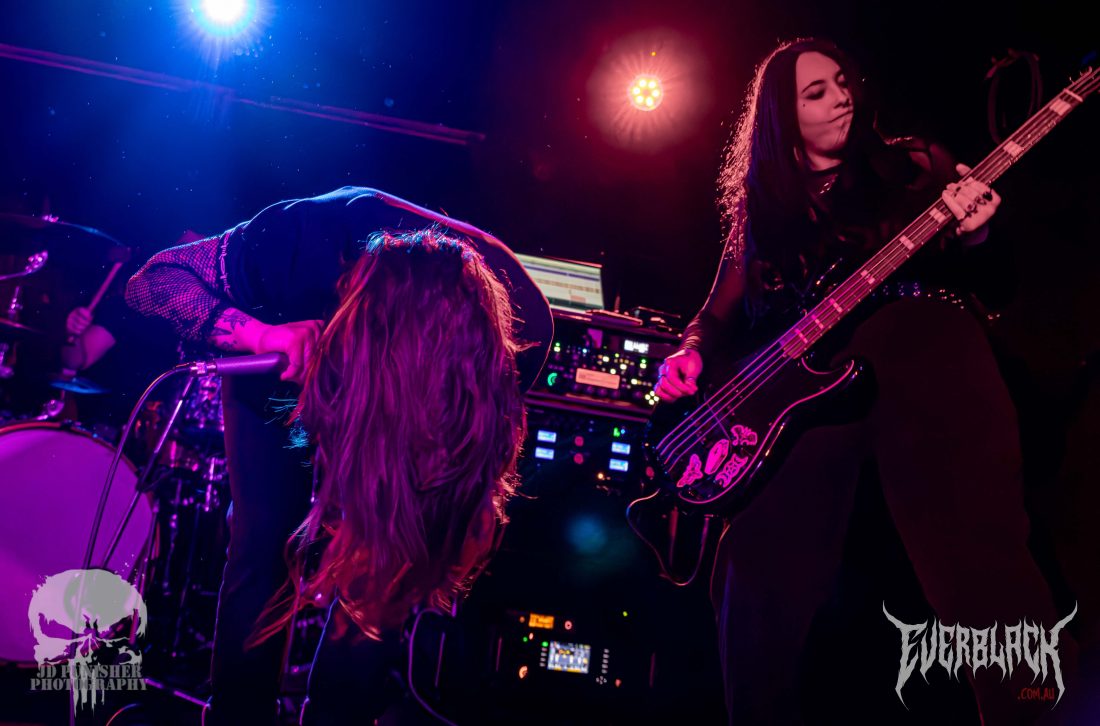 First to take to the Black Bear Lodge stage are Brisbane’s very own Acid Cherry. Do not take this band lightly, they go fucking hard! The all-girl group were crowd pleasers with their grunge-metal combo, and being the opening band, they almost didn’t leave any of the venue’s roof left to be blown off by the rest of the bill! Authentic and determined frontwoman Brooke Beauchamp is a force to be reckoned with, with a captivating stage presence and one hell of a vocal range. Her operatic vocals thrill without feeling too overused, while her gravelly, guttural growls are as much at home in their song as her clean vocals.
