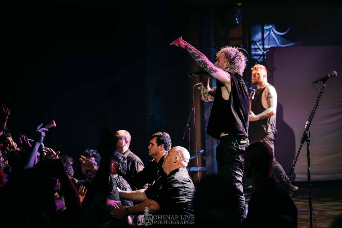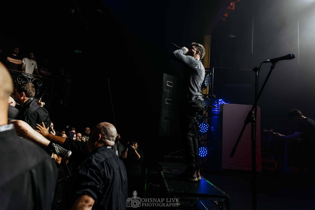 Somehow sounding even better live, this was the perfect lead into ‘The Flood (ǝɔᴉʇsnɾ)’ which saw a sea of headbanging. As the last chug concluded, frontman Jake Taylor took a moment to talk to the crowd and welcome their brother Kyle Erich onstage. Smiling ear to ear as the crowd began to chant his name, many crowdsurfers made their way to the front to say goodbye to the incredible vocalist throughout ‘Traveller (The Fool)’.