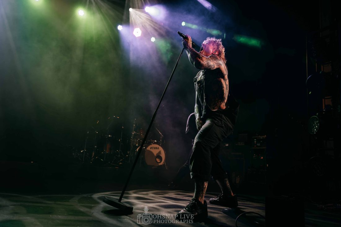Performing ‘Please End Me’, ‘The Orphan’, and ‘Nail To The Tooth’, we got to see just how tight this band is live and what a great frontman Marc Zellweger is. Inspiring the first wall of death of the evening, which managed to expand across half of the moshpit, the crowd was well and truly ready for In Hearts Wake.