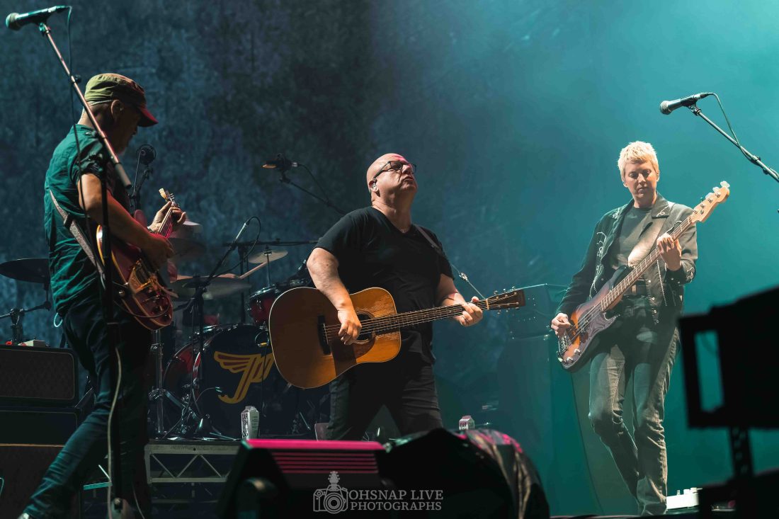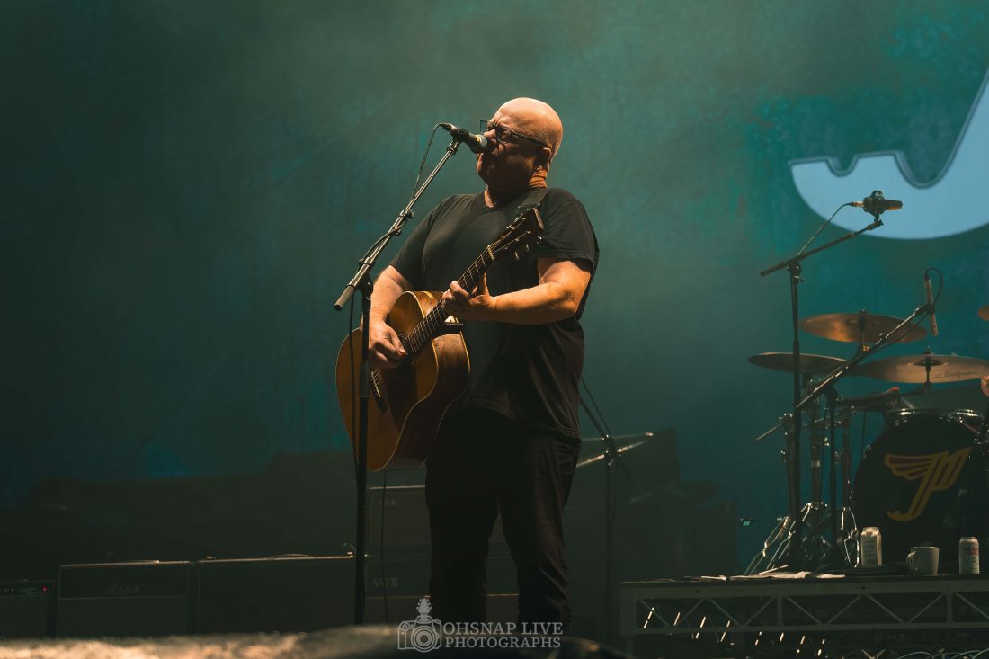 Eventually Delayed by over an hour, Pixies were forced into making drastic changes to their plans and played a truncated nine song set to the soaking masses still filtering into the stadium.  The band are no strangers to these shores.