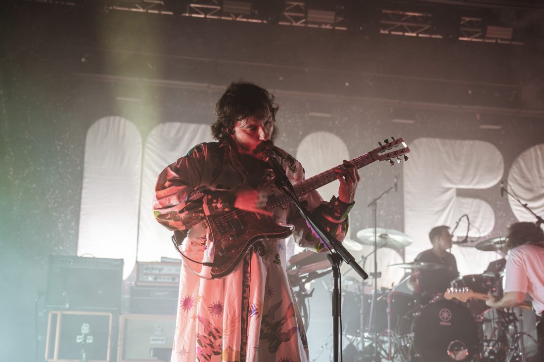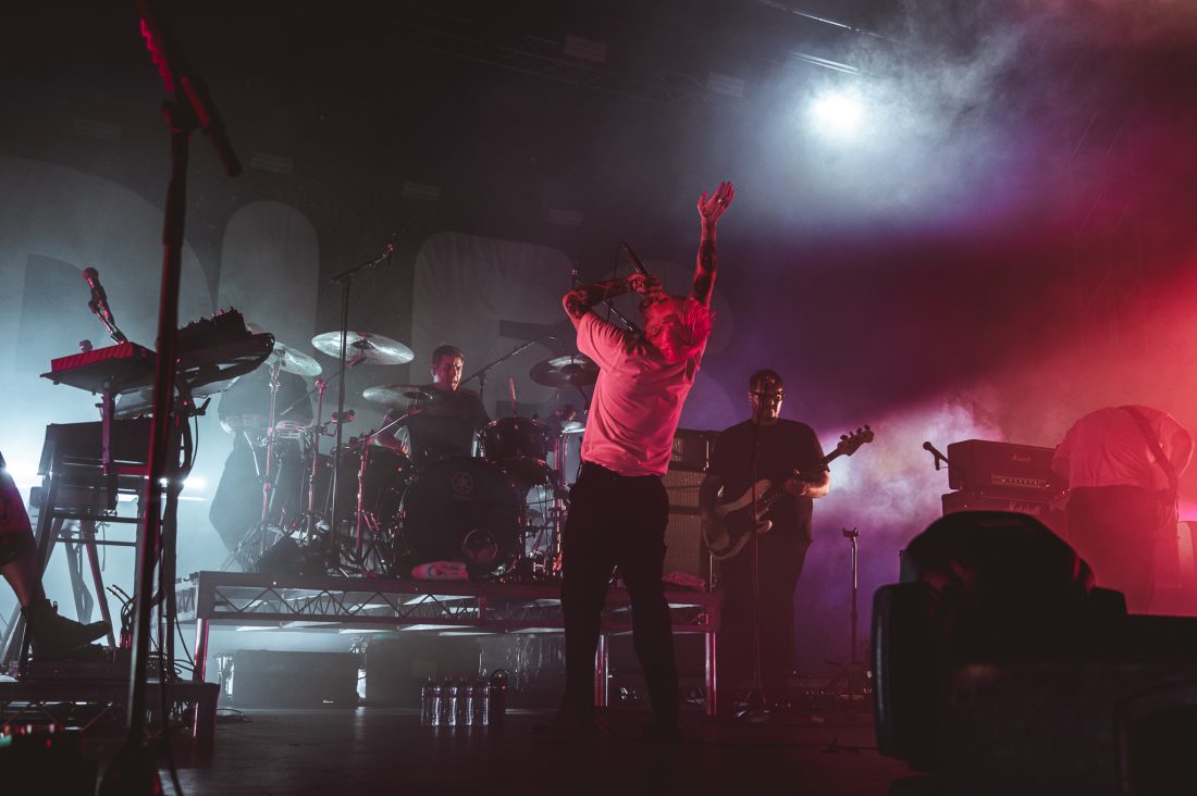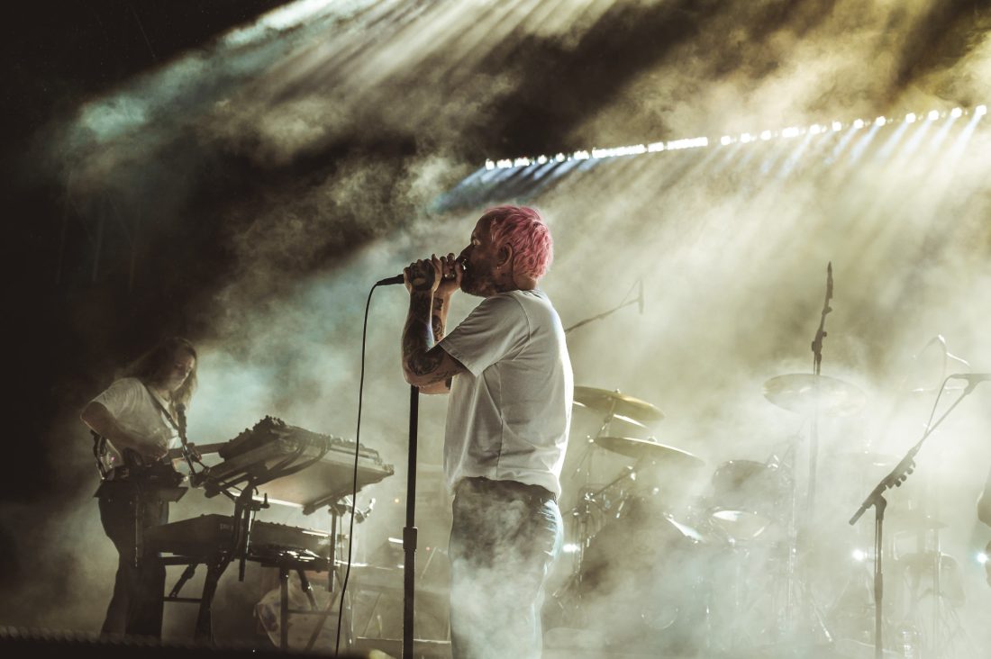 It was only a short wait between bands, but things seem to dial down as Brooklyn’s Nation of Language take the stage. It’s definitely an anomaly and maybe even a risk, booking an 80s synth pop trio to compliment a post-hardcore punk band at a 10,000 capacity venue, or it might even be a stroke of genius.