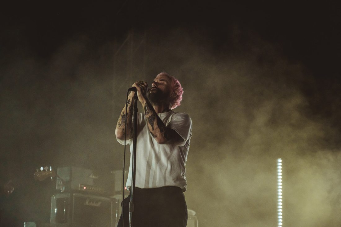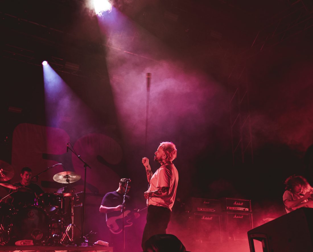 Casually, Idles appear on stage and vocalist, Joe Talbot taking center stage pacing back and forth with purpose, getting his barings. ‘IDEA01’ provides an inauspicious, melodic opener before the arrival of the slow-burning percussive beast, ‘Colossus’ culminating with the crowd echoing and then chanting Talbot’s lyrics “goes and it goes, and it goes” as the song reaches its violently heavy climax. The song’s reprise provides a more raucous intro into ‘Gift Horse’.