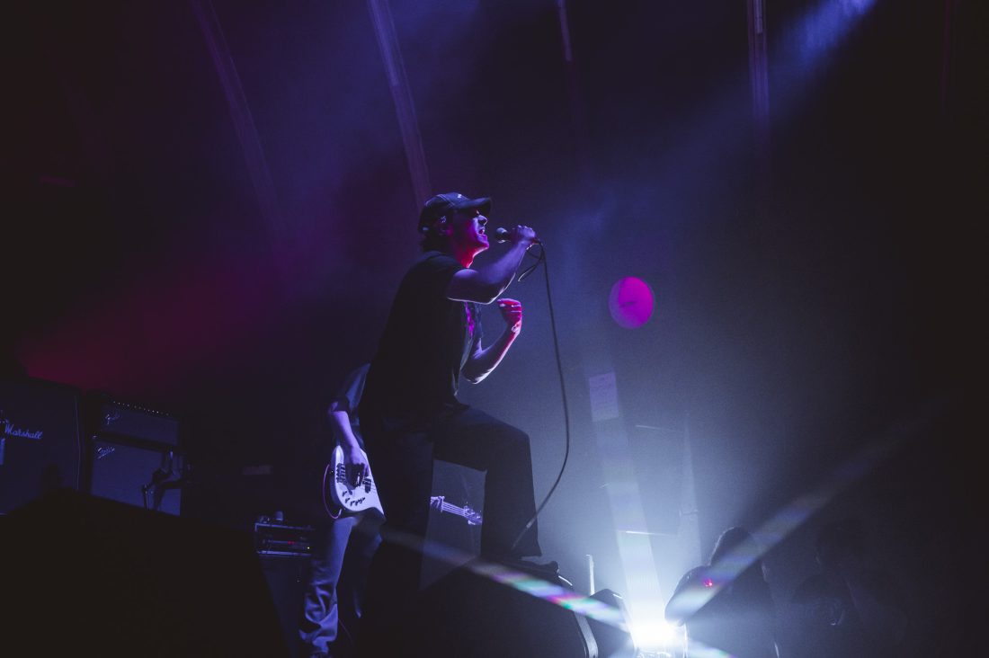 ‘Bending At The Knee’ kicks off proceedings and we’re away. The band is fairly stationary throughout with only vocalist, Jamie Timothy, weaving across the stage between lines of shoegaze poetry. ‘Cholesterol Heart’ is an early banger that gets the crowd singing along but it’s the between-song banter that gets everyone onside. “What’s your name? 1-2-3 go!” he jokes as the entire room screams an unintelligible mix. “Darryl?” he replies.
