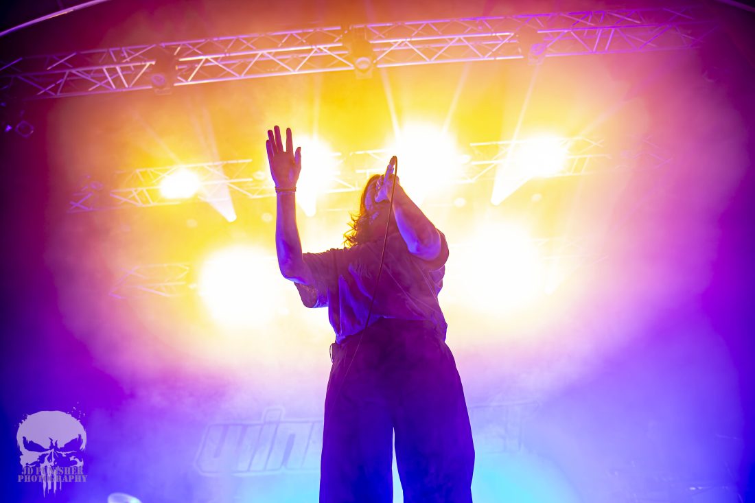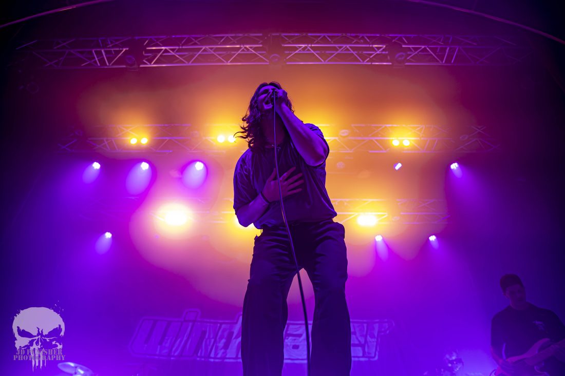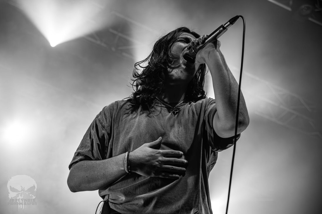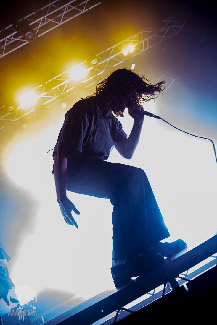 The aggressive energy of frontman Kynan Groundwater is matched perfectly by that of his band mates. The quartet perfectly in synchronous harmonious chaos, sets the crowd on fire with their brand of hardcore. Kicking off the evenings first circle pit early in their set, the crowd raged to the disorientating synth that flowed between the roaring vocals, crashing drums and screaming guitars.