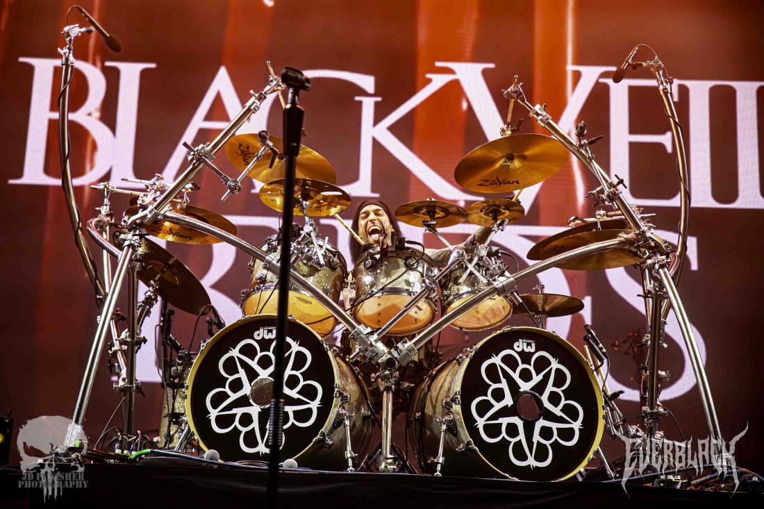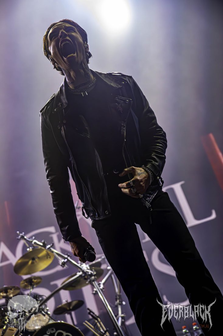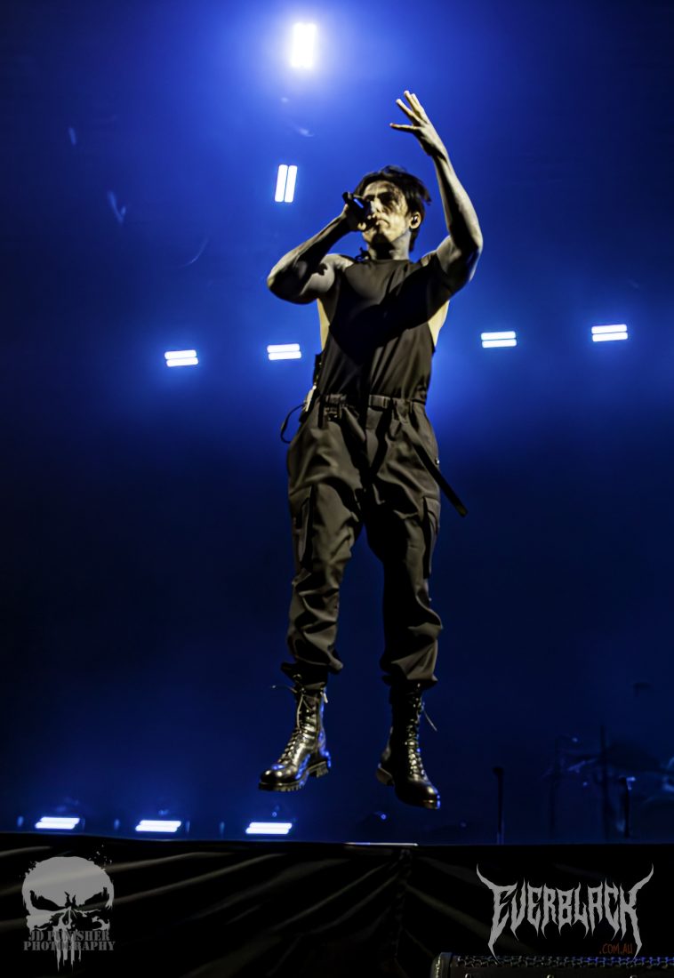 Biersack performs in the manner of a clergyman conducting a sermon, his flock hanging on his every word and move. The show-stealing stagemanship of the frontman doesn’t take away from his bandmates, with Jinxx and Pitts rocking out with bassist Lonny Eagleton around the frontman and drummer Christian Coma driving the set from the rear of the stage.