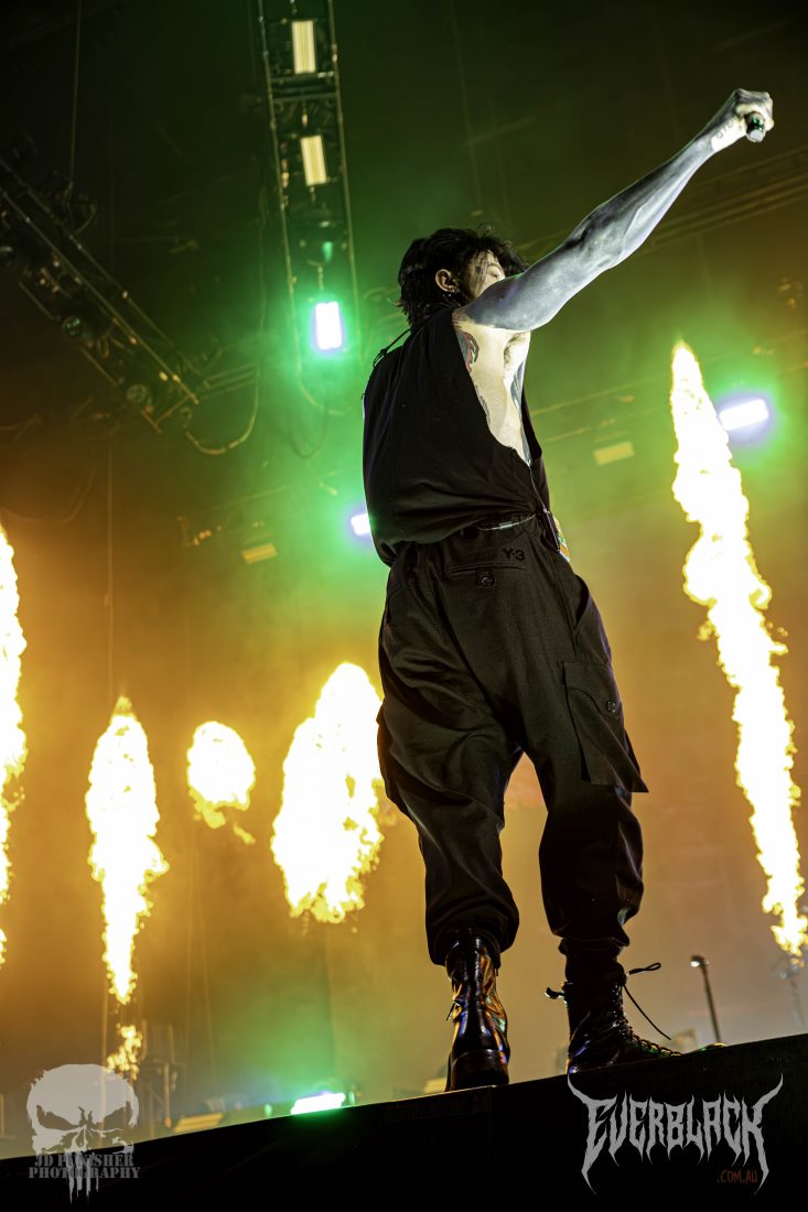 He did pay respects to Hollywood Undead and gave praise to Falling In Reverse, advising the crowd it would be “the best show you’re ever gonna see” before delving into Faithless, followed by Coffin.