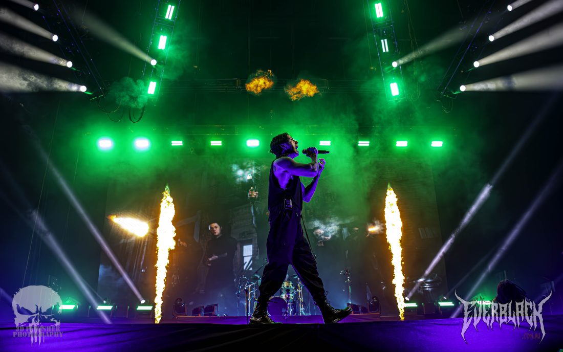 The set was huge with its stacked setlist, pyrotechnics, theatrical display of music videos that were perfectly timed with the band’s performance, Radke’s onstage display, and crowd interaction. Arguably their heaviest track, Ronald (with recorded vocals from Tech N9ne and Alex Terrible) and critically acclaimed Watch The World Burn closed off the set. The vocalist gave a passionate speech, stating that Falling In Reverse had only just started and they were “not going to fucking stop.