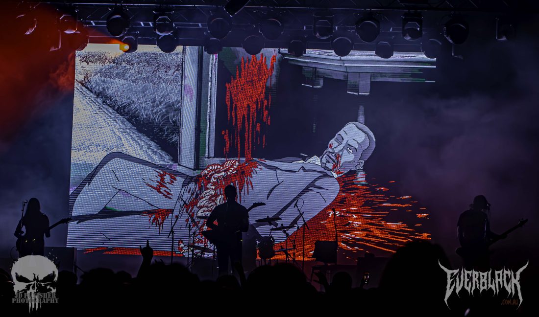 This was followed by Briefcase Full of Guts, Birthday Dethday, and Mutilation on a Saturday Night—each accompanied by its own video projected on the massive screen which feels like you’re watching a new episode of the show.