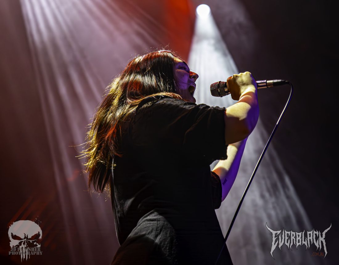 Jade Monserrat is a force of nature—her vocal range and presence are nothing short of jaw-dropping. She commands the stage with an intensity that’s impossible to look away from, unleashing guttural growls, piercing screams, and physical contortions like someone possessed. Meanwhile, guitarists Matt Walters, Corey Davis, and drummer Liam Weedall deliver a flawless display of musicianship, the kind that makes you want to either hit the practice room immediately or pack it in altogether.
