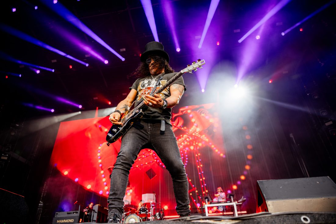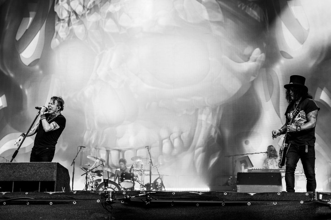 Slash, meanwhile, was absolutely untouchable with his top hat, Les Paul and those solos before Sweet Child O’ Mine slicing straight through the rain and sending shivers down our spines. Between costume changes and extended jams, the set rolled on until Axl took his seat at the piano for a heartfelt November Rain, reminding us all why this band is stitched into rock history. Finally, it was time for the inevitable closer, Paradise City. The band and audience, exhausted but elated, gave it everything left in the tank. Axl reached for the high notes with every fiber of his being, while Slash descended to the stage edge, shredding inches away from the diehards. With the final notes still hanging, the GNR logo glowed above in a fleet of drones, a sky-high salute to the fans.