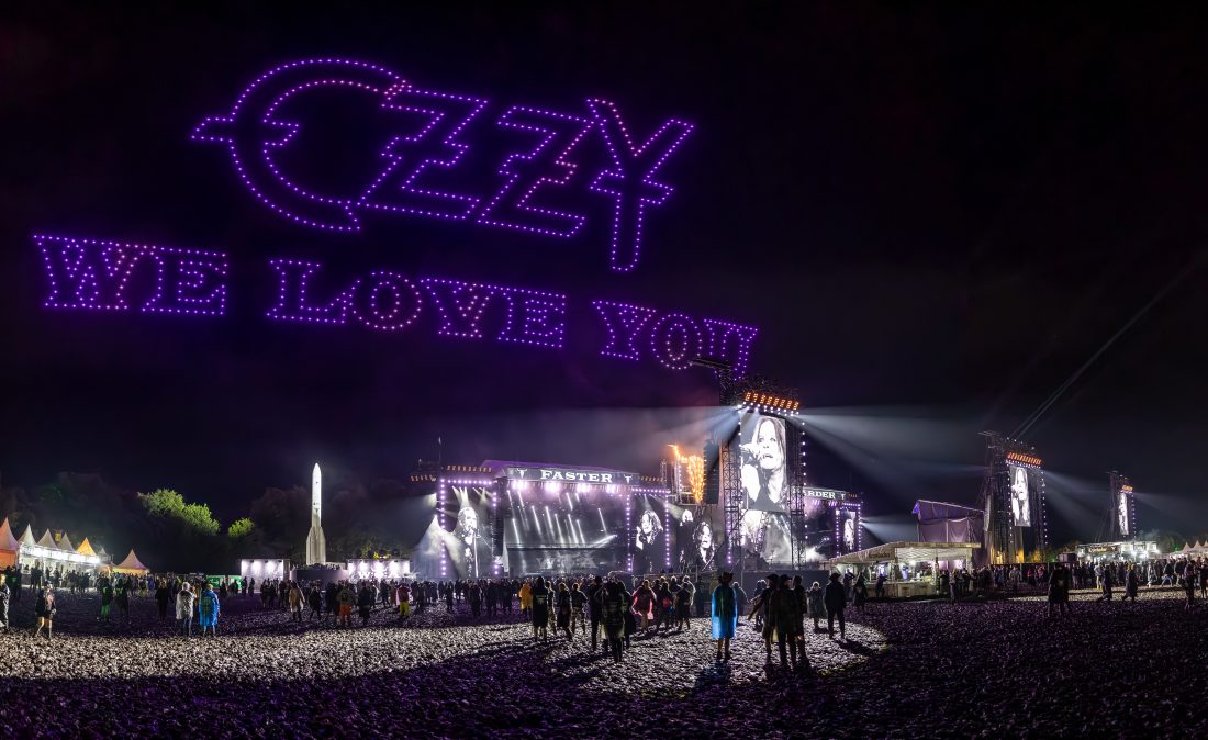As we sit back at camp after that fever dream, we look up to see the sky is filled with a loving drone salute to the late Ozzy Osbourne. The glowing purple lights read, WE LOVE YOU OZZY, followed by the Black Sabbath logo flying its wings into the darkness. What a day and what a tribute.